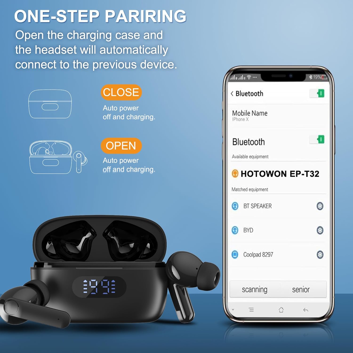 【Bluetooth 5.1 & One-Step Auto Pairing】True wireless earbuds utilize the most stable Bluetooth 5.1 technology, providing you with faster transmission speeds (80% faster than the previous generation) and a more stable connection with virtually no latency. Whether you’re making calls or working out, you don’t have to worry about signal interruptions. After the initial Bluetooth pairing, simply open the charging case, and the earbuds will automatically connect to your phone.