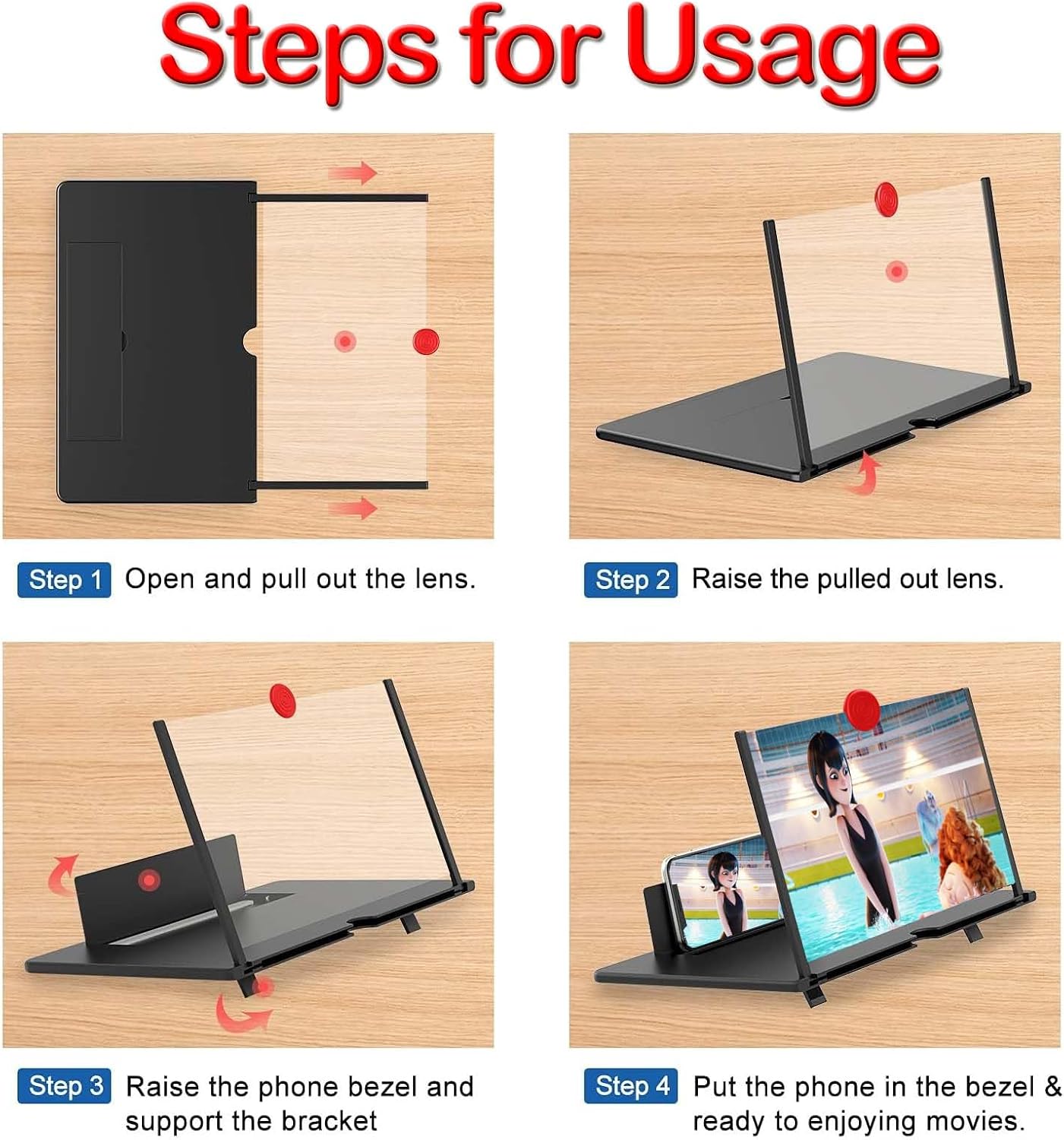 This cell phone screen amplifier is equipped with a 3D acrylic lens that is clearer and brighter than the ordinary lens. Against blue to protect your eyes, reduce visual fatigue caused by prolonged focus on small screens.