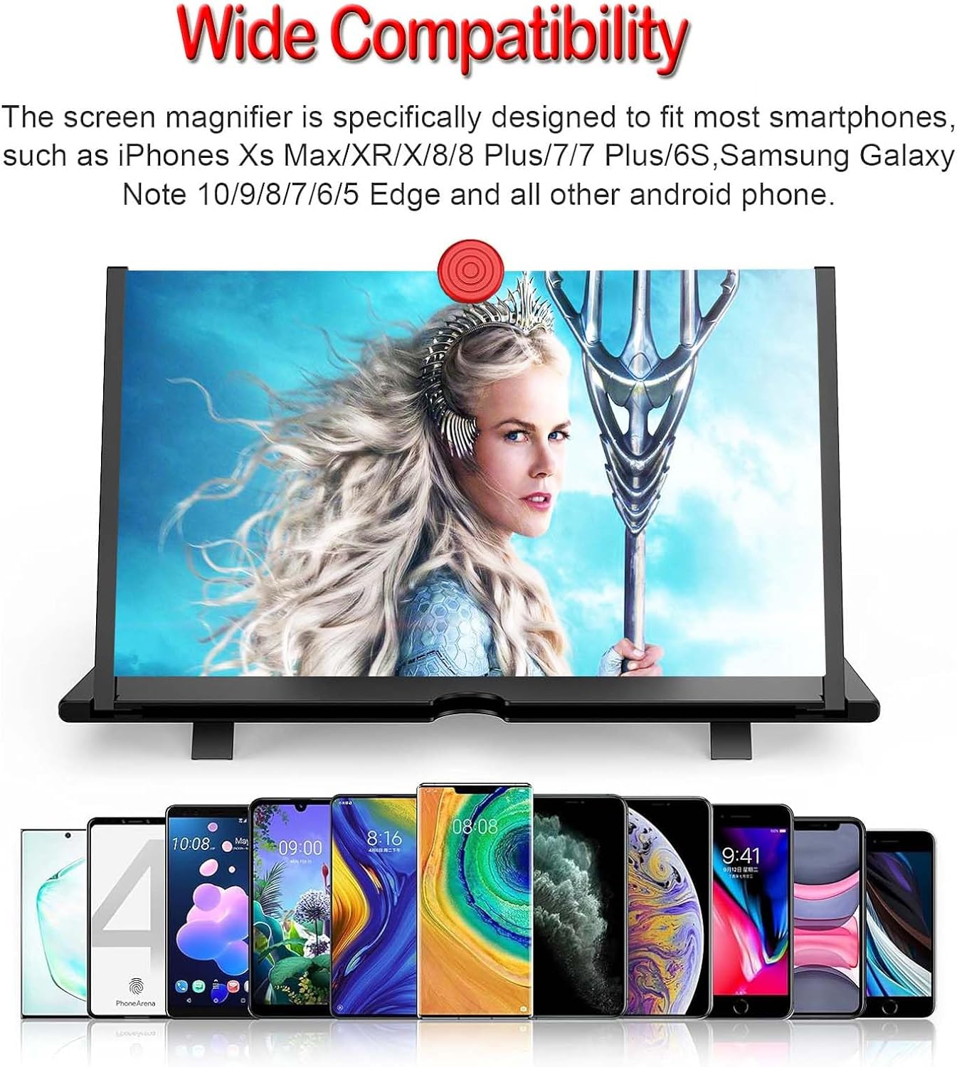 【Compatible With All Device】 The screen magnifier is specifically designed to fit most smartphones, such as iPhone Pro Max 15/15 /14/13/12/XR/8/7/6, Samsung Galaxy Note 10/9/8/7/6/5 Edge Android phone smartphones.