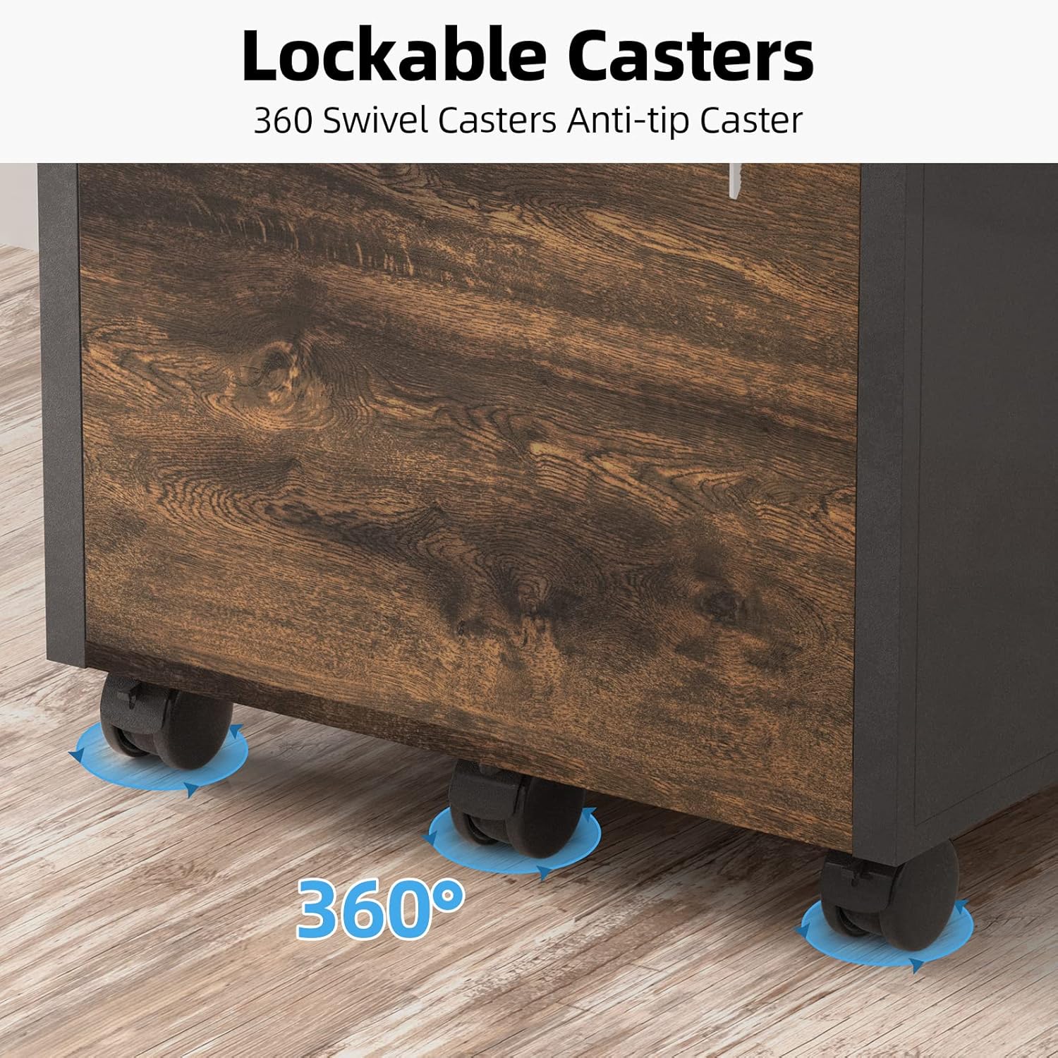 ✔️👍【 ROLLING FILE CABINET 】The mobile file cabinet comes with five 360° swivel casters, 2 of which have brakes to fix at any time, including 1 in the center for added stability. Rolling cabinet allows effortless movement while ensuring it stays firmly in place when needed, it in place to prevent any unwanted movement or potential accidents, allowing you to move it around wherever you want.