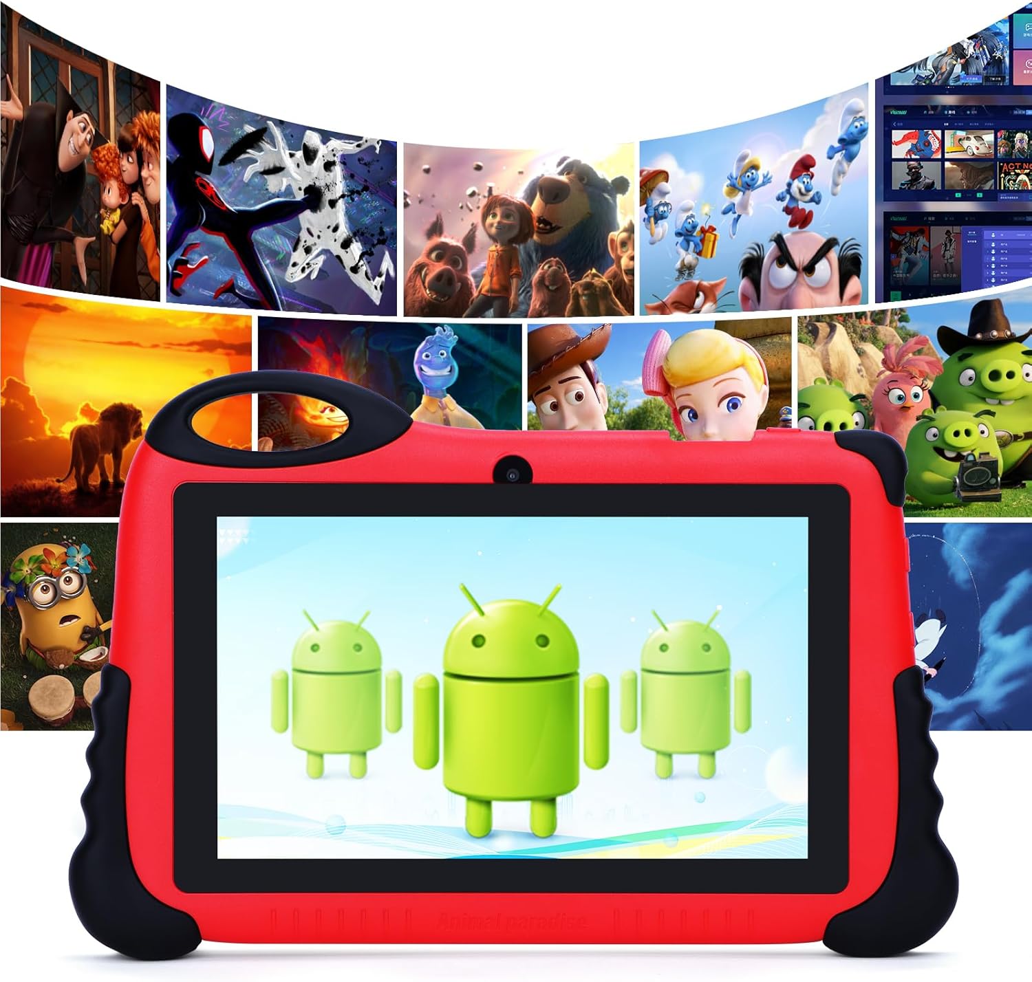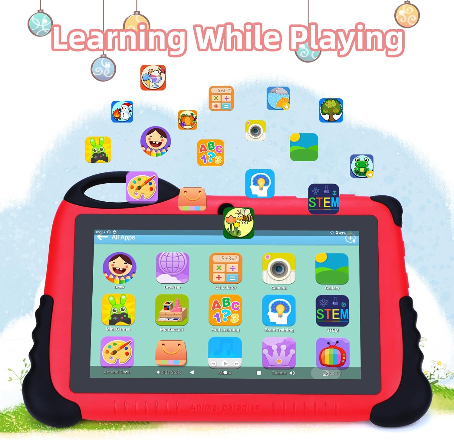 2024 Tablet For Kids, 7 Inches Android 13 Toddler Tablets Over 3 Years Old, HD 1024*600 Screen Display, 4GB RAM 32GB ROM, 512GB TF Card Expandable, Parent Contral, Learning Tablet For Boys Girls Red