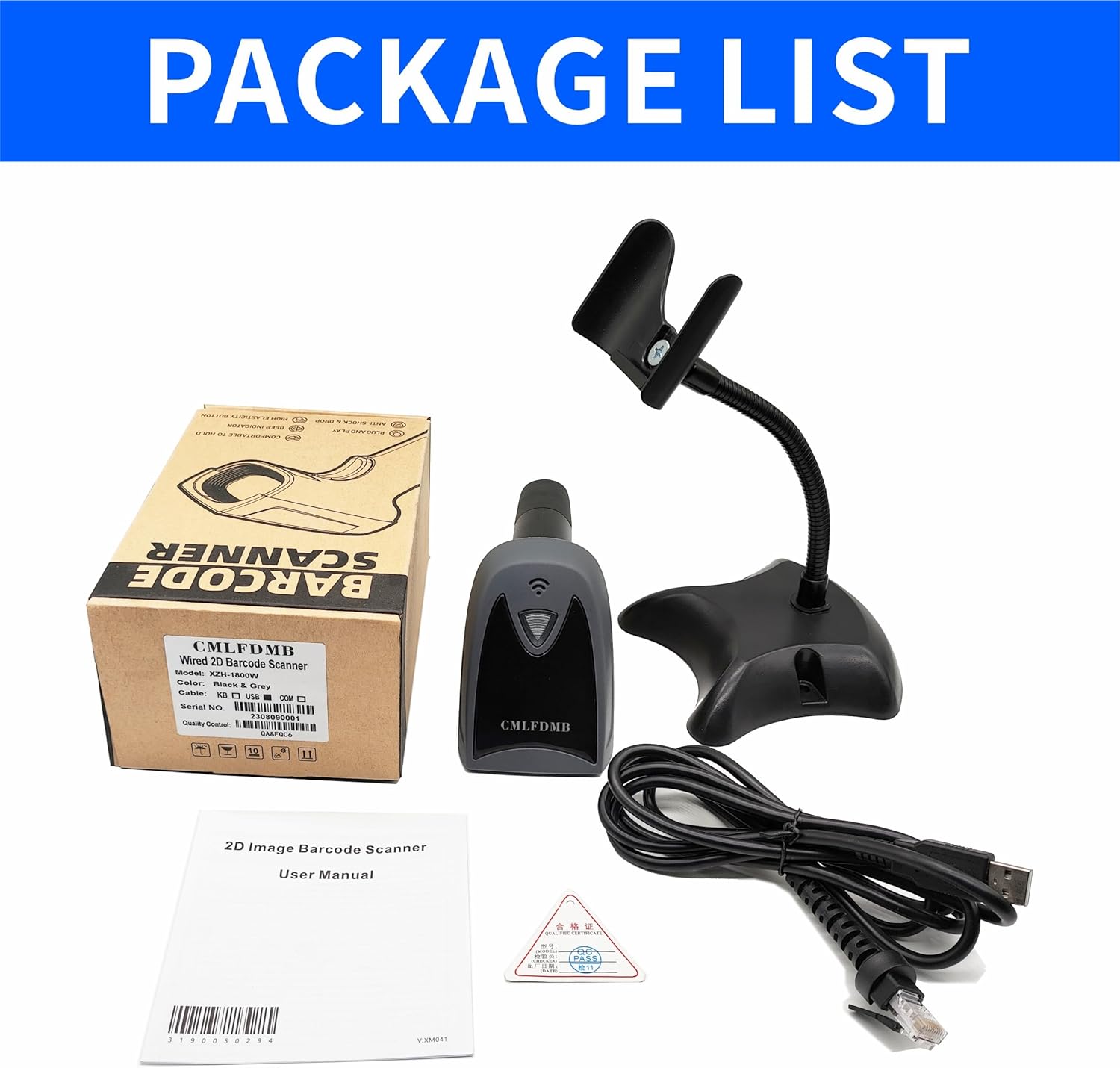 CMLFDMB 2D Wired Barcode Scanner USB with Stand and Automatic Scanning