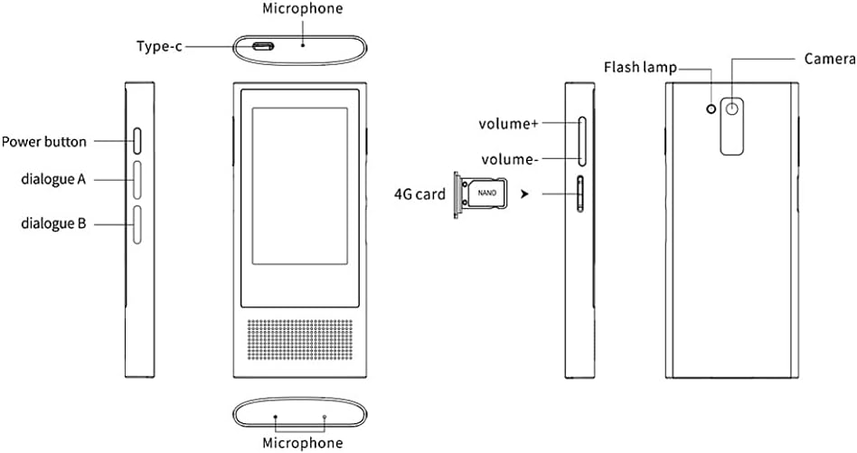 Specifications:Features: CPU: Quad Core Cortex-A53Processor Architecture: Quad-core ARM Cortex-A53 MPCoreProcessor Process: 28nm SOCGPU model: PowerVR GE8100 570MHzVideo Encoding: 1080p 30fps H.264Video: 1080p 30fps H.264/H.265 , MPEG-4 SP/ASP4G band: FDD: 1 3 7 8 20 28A TDD: 38 39 40 413G frequency band: WCDMA: 1 2 5 8 TD-SCDMA: 34 39EDGE/GPRS Specifications : CLASS12Memory: RAM: 1GB, ROM: 8GBTF card: not supportGPS: SupportWiFi: WiFi 2.4G/5GTranslation speed: 0.2sPhoto translation: support 43Bluetooth: BLE4.0Standard charging: 1ASound Amplifier: Class KAir upgrade: SupportSize / Technology : 3.1 inch LCD / IPSResolution: 480*800Pixel density: 143Brightness: 420CD/m2Comparison: MIN500 TYP 800Panel Technology: G+FMaster IC: FT6336Induction technology: Single point + gestureMaterial: Asahi GlassScreen fitting method: frame stickersSensor: SP5509 / GC5025Optical size: 1/5 inchPixel size: 2592*1944 800WAperture: 2.2Optical Image Stabilization: Wide angle: 72 degreesPhase focus: Flash: True flashSpeaker: 32BOX multimediaMicrophone: Double SiliconHeadphone port: TYPE-C transferCharging port: TYPE-C 2.0Capacity: Unloadable, real 2080mAH (typical)Charge and discharge frequency:Material: Lithium cobaltateVoltage: 3.8VDischarge coefficient: 0.2CBattery density ratio: 584.19 wh / LStandby time: 235hShell structure: not removableHeadphones: with extension cableData line: 5V/1.5ADimensions and weight: 129*58*12.6mm/5.08*2.28*0.49inNotes:Please allow 1-3mm measuring deviation due to manual measurement.Due to the different monitor and light effect, the actual color of the item might be slightly different from the color showed on the pictures. Thank you.2-in-1 AI Translator Device and Voice Recorder