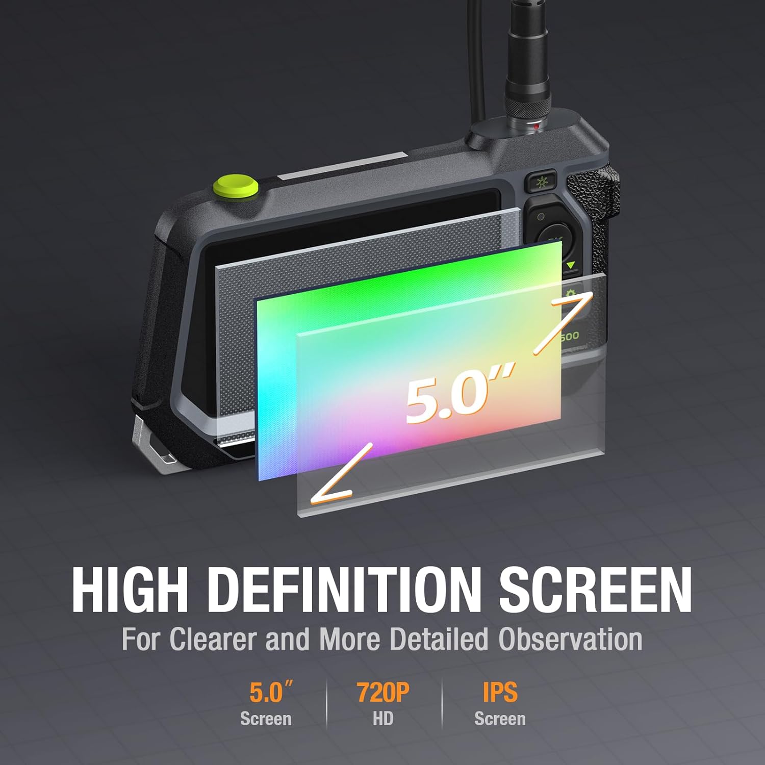 🏆5″ 720P Screen – The handheld endoscope monitor features a 5″ (720P) color IPS LCD screen with (1280×720) HD image resolution and a 3500mAh rechargeable battery. It is made of industrial-grade plastic and toughened glass, making it drop-resistant, slashproof, and perfect for industrial inspections.