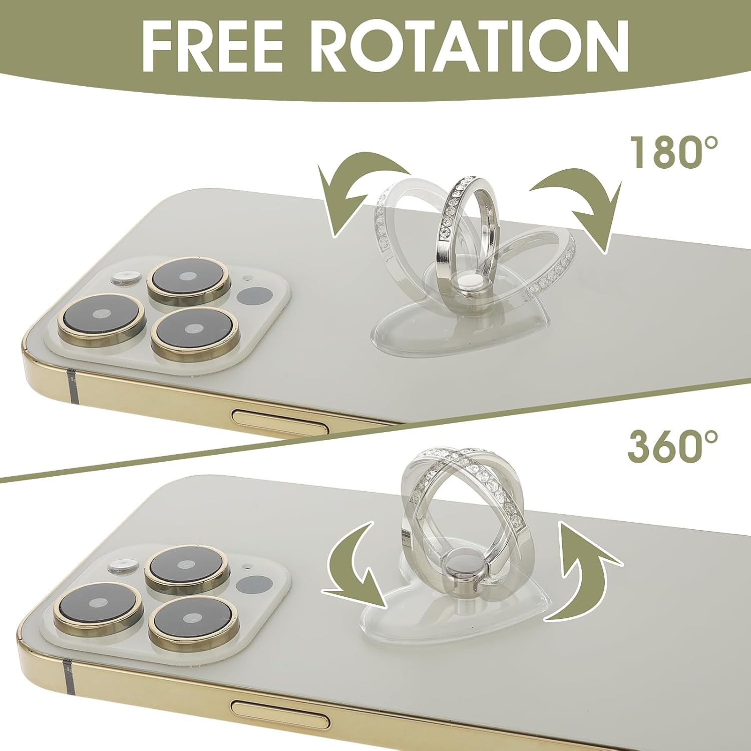 WLLHYF 4 Pcs Rhinestone Cell Phone Ring Holder Transparent 360° Degree Rotation Universal Phone Ring Holder Finger Kickstand Clear for All Mobile Phones
