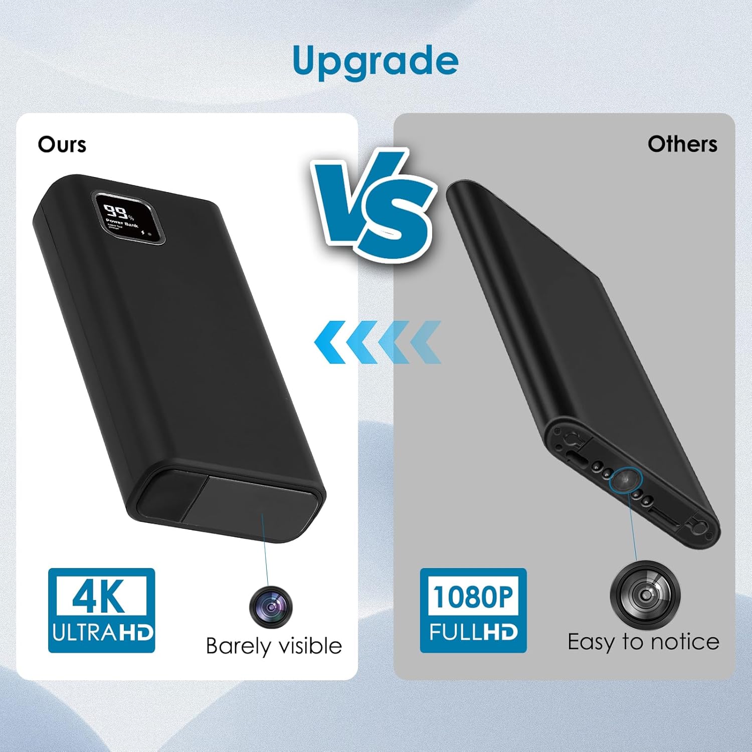 4K Power Bank Camera Detector with Built-in 10 High-Performance Hidden Infrared Lights & 10,000mAh, Security Camera with Motion Detection Night Vision HD Indoor Outdoor Nanny Cam No WiFi