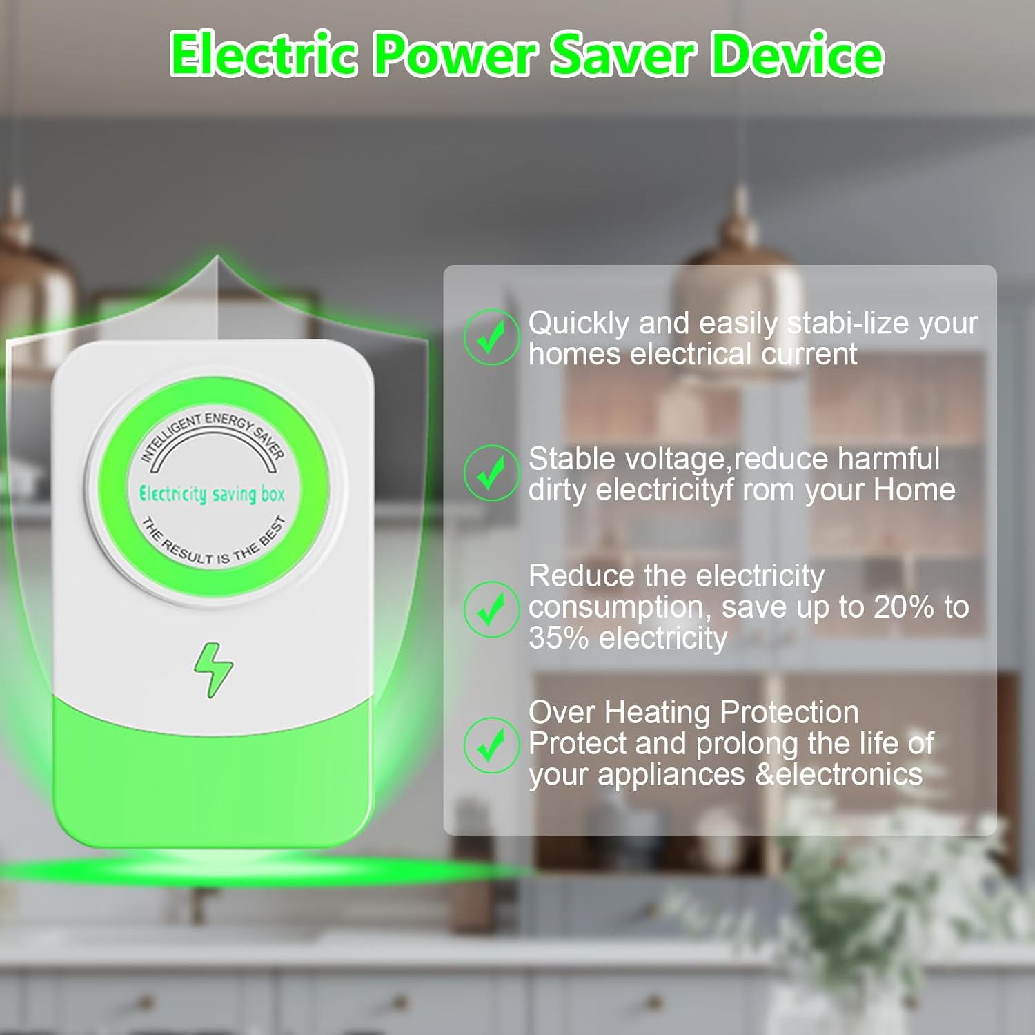 💰💵WHAT THE STOP ENERGY SAVING DEVICE CAN WORK: The functions of Electricity Saver is to stabilize the voltage, balance the current, avoid the waste of electricity invachid, and surge protection in order to achieve power-saving effect. The pro power saver can also improve the use of electrical appliances power, avoid the waste of electricity invalid ,thus extend the service life of the electrical product.