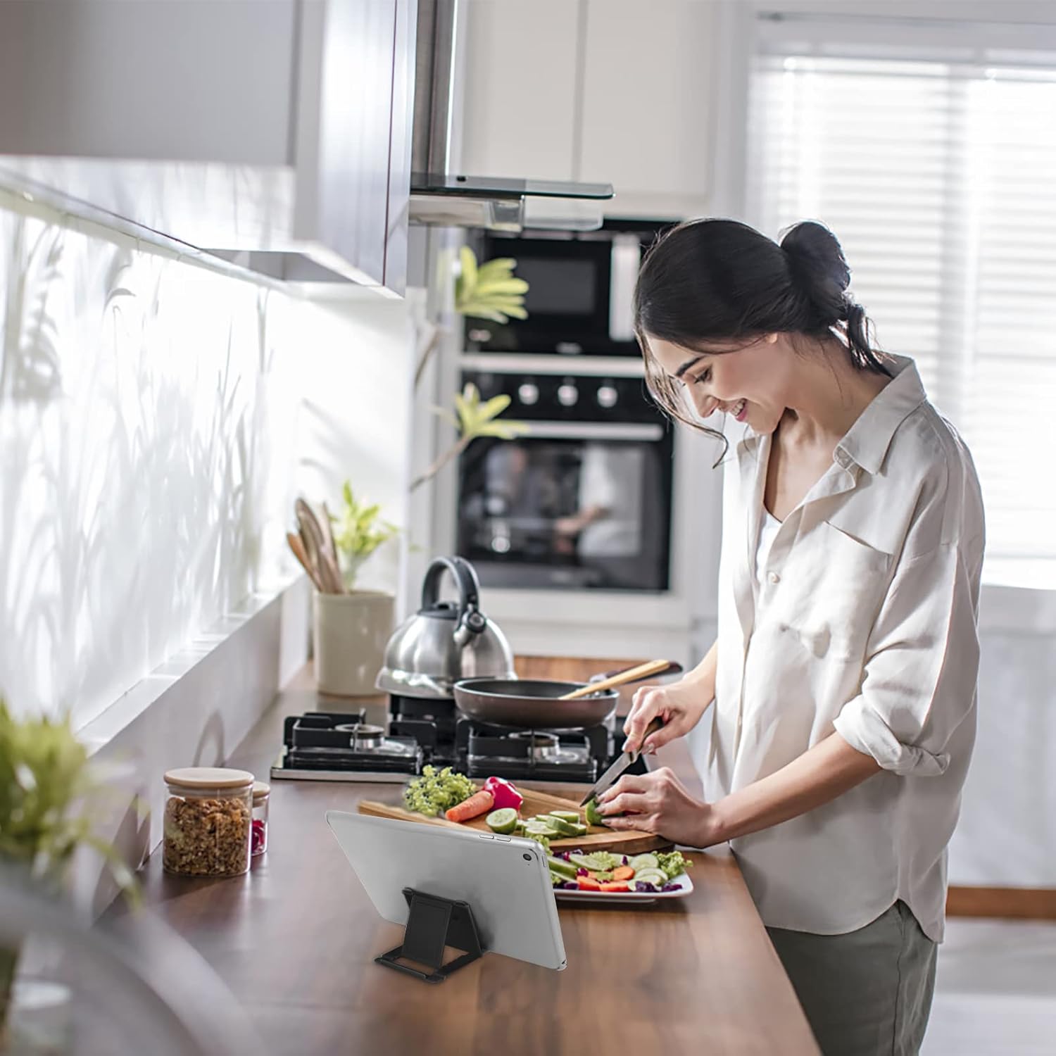 【Universal Compatibility】: These universal cell phone stands are compatible with all Smartphones(4 -7.9 inches), E-reader and Tablets(6 -11 inches)