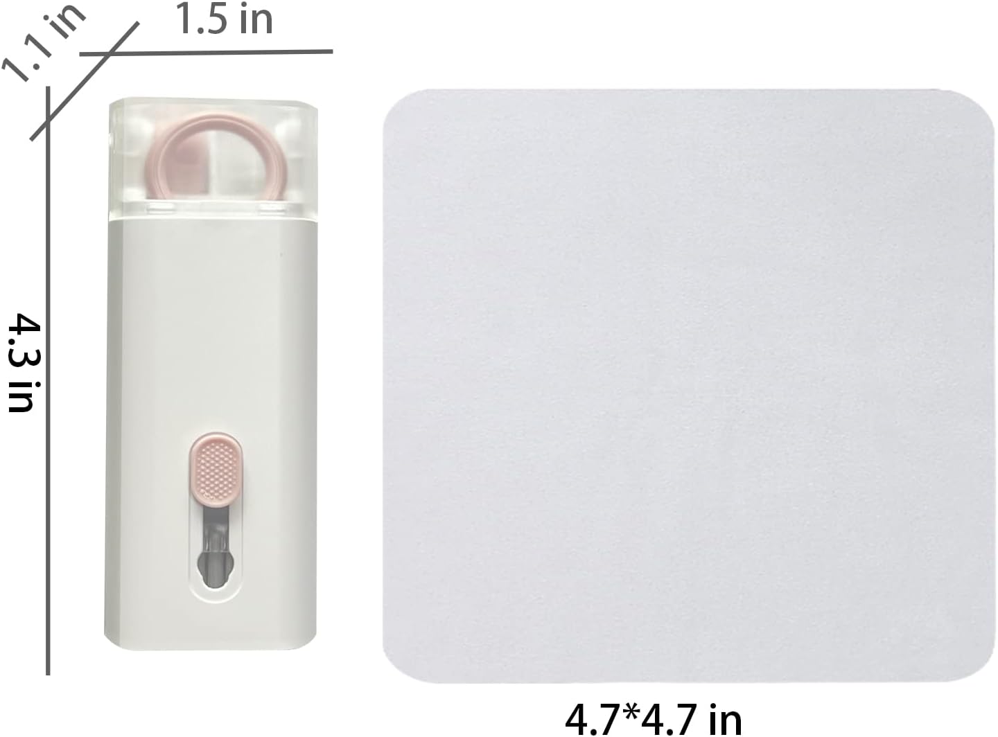 MULTI-FUNCTIONAL CLEANING KIT: This 8-in-1 electronic cleaner kit includes 1 large high-density brush, 1 soft sponge, 1 cleaning pen for airpods(includes silicone tip, small sponge and mini high-density brush), 1 Keycap Puller, 1 flannel cleaning cloth and 1 spray bottle (5ml Screens Cleaners Spray) for every cleaning need.