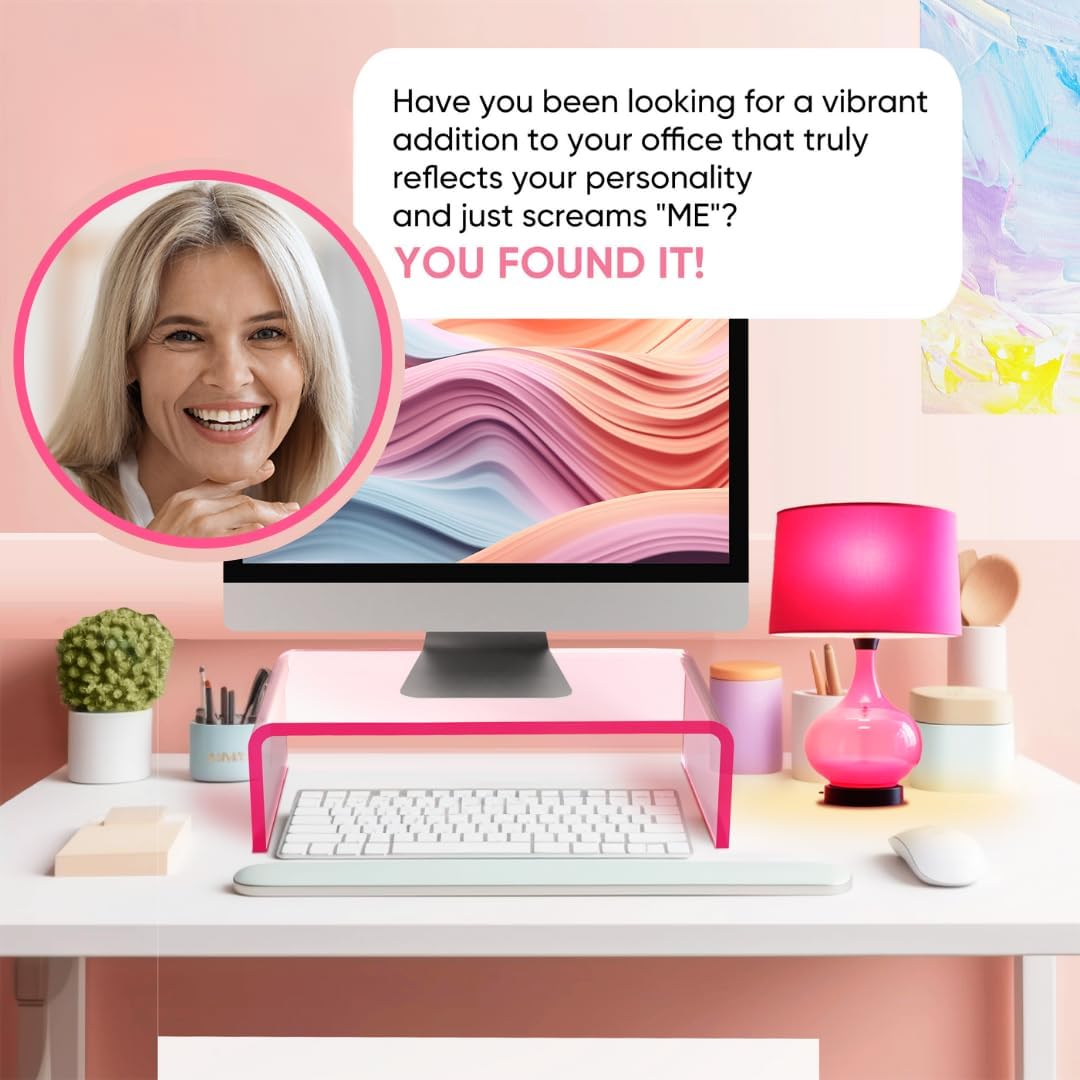 Acrylic Monitor Stand, Pink Computer Riser, Pink Desk Riser, Pink Acrylic Laptop Stand, Acrylic Monitor Stand for Desk, Pink Monitor Stand, Monitor Riser (Light Pink)