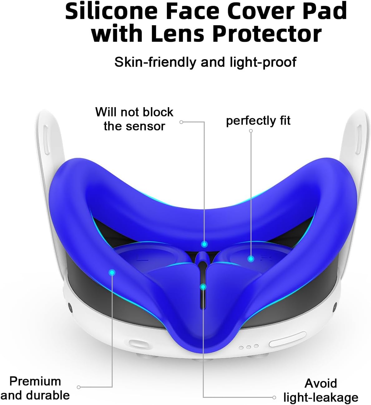 AIXOTO VR Silicone ECO Accessories for Meta Quest 3, Protective Case Set for Oculus Quest 3, Face Cover, Controller Grip, Shell Cover, Lens Cover, Disposable Eye Cover(Accessories for Quest 3, Blue)