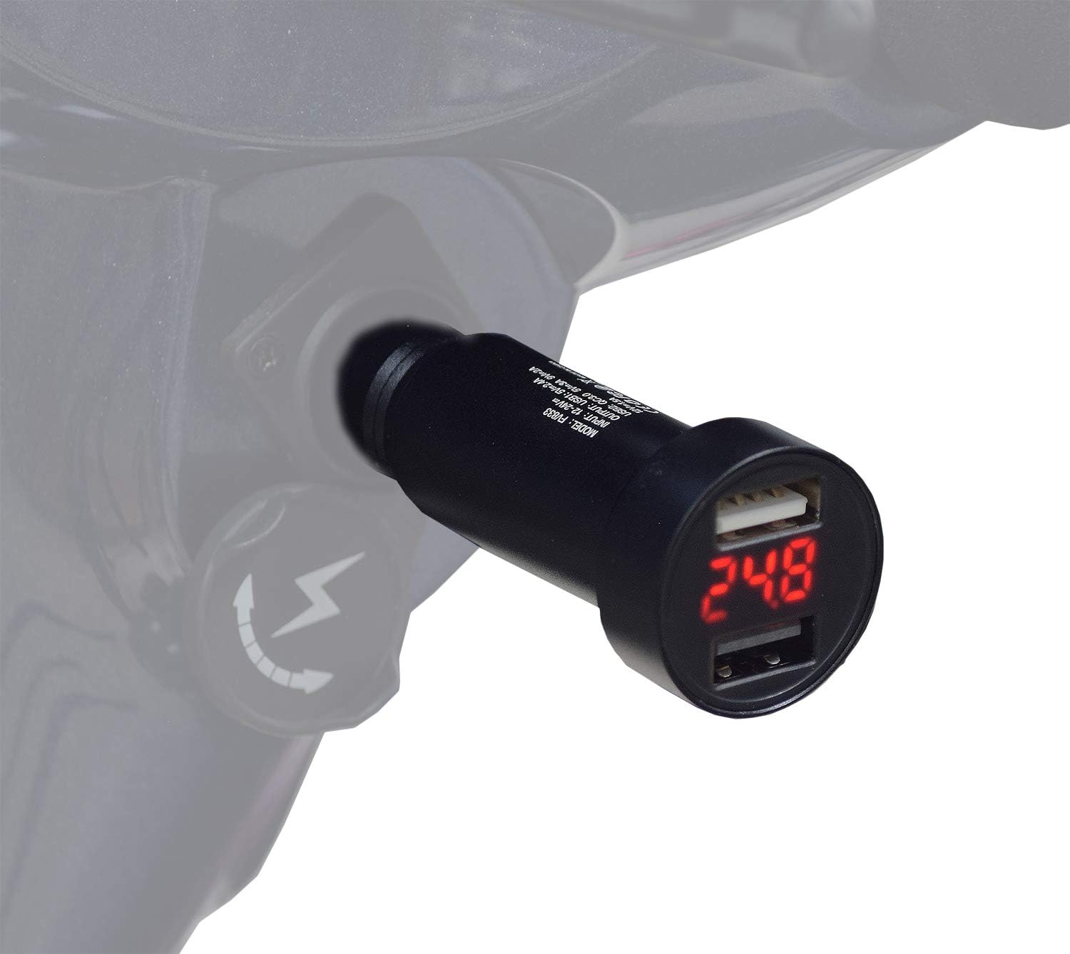 SPECIFCATION: Dual USB ports (2.4A & 3.0A) with a Digital Volt Meter to monitor your device’s battery charge levels | Compatible Input Voltages: 12V to 24V | Phone charger for wheelchair