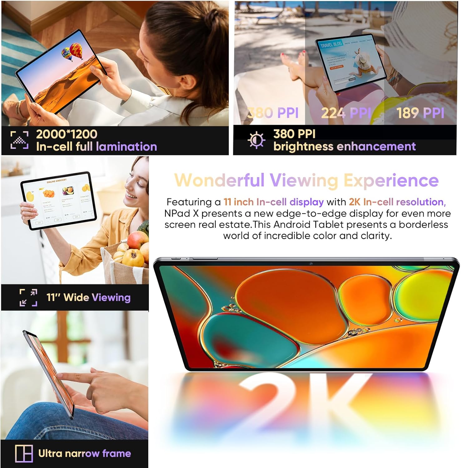 N-one Android Tablet come with the latest and most advanced Android 13 version, is powerd by Octa-Core, providing a smooth responsive and intuitive user interface. With a 11 inch In-Cell display and 2000×1200 2K FHD resolution, N-one tablet provides crisp and vibrant visuals.
