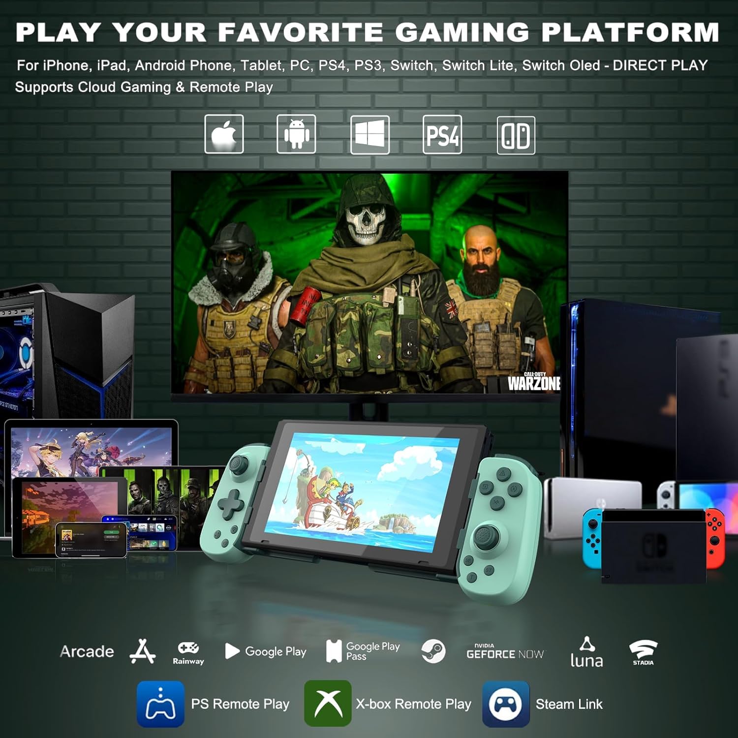 🎮🎮【COMPATIBLE WITH MULTIPLE DEVICES】This wireless gaming controller for iOS 13.0+, android 6.0+ and win7.0+systems. Work with iPhone/iPad/Samsung Galaxy/Galaxy Note/One Plus/TCL/Huawei/Oppo/Motorla and more Android phone/Tablet/PC/MacBook/Notebook/Laptop. Compatible with Switch/Switch OLED/Switch Lite/PS3/PS4. (Compatible with PS5, but only supports playing PS4/PS3 games on PS5 console)