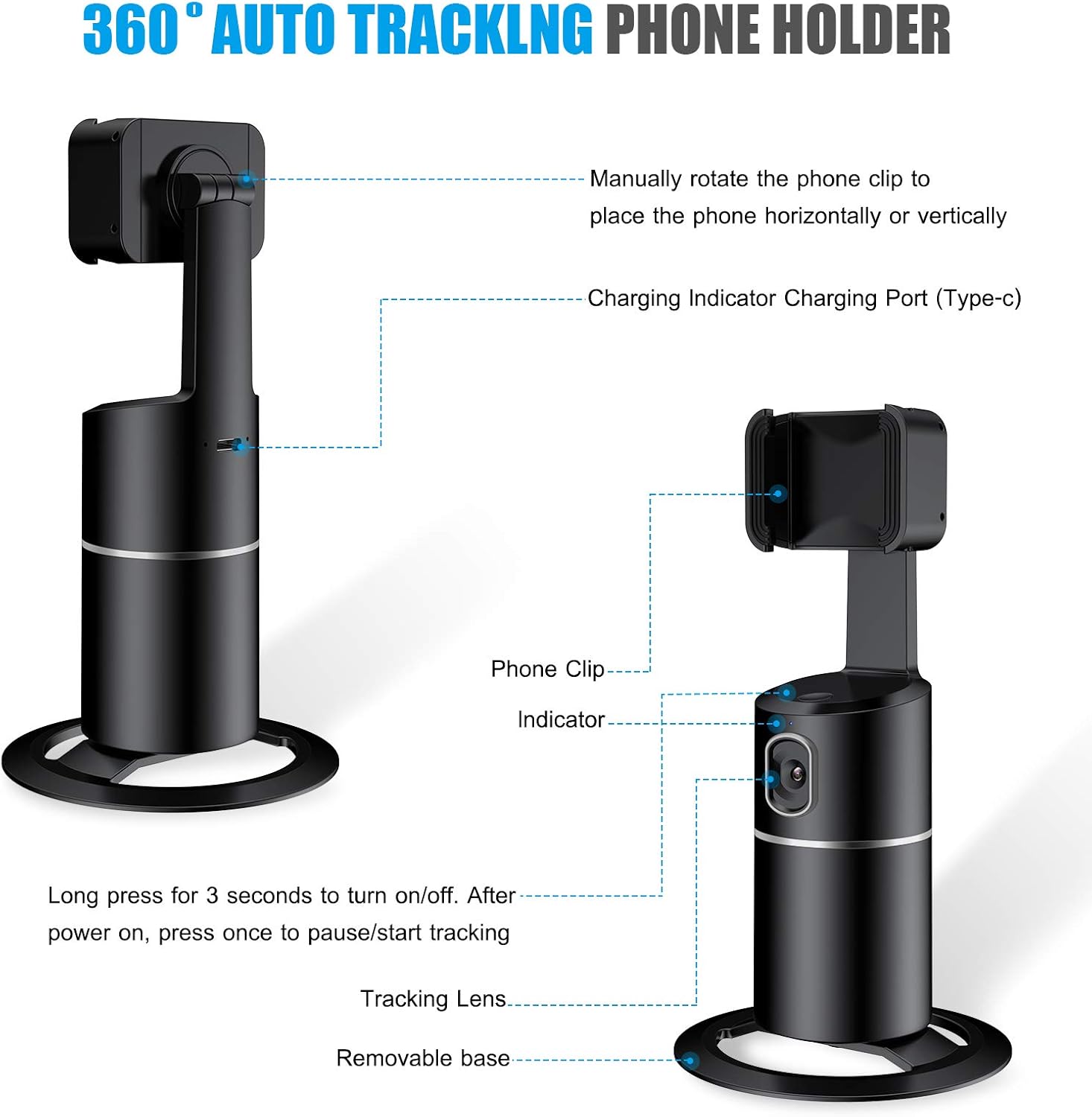 Auto Face / Body Tracking Phone Holder: This 360° rotation auto tracking phone holder adopts a Face / Body motion sensor system that can track your movement, great for a selfie, live streaming, record video and watch the video. And it is also an excellent auxiliary tool for Tik Tok Live (Please do not move too fast, it takes time to react)