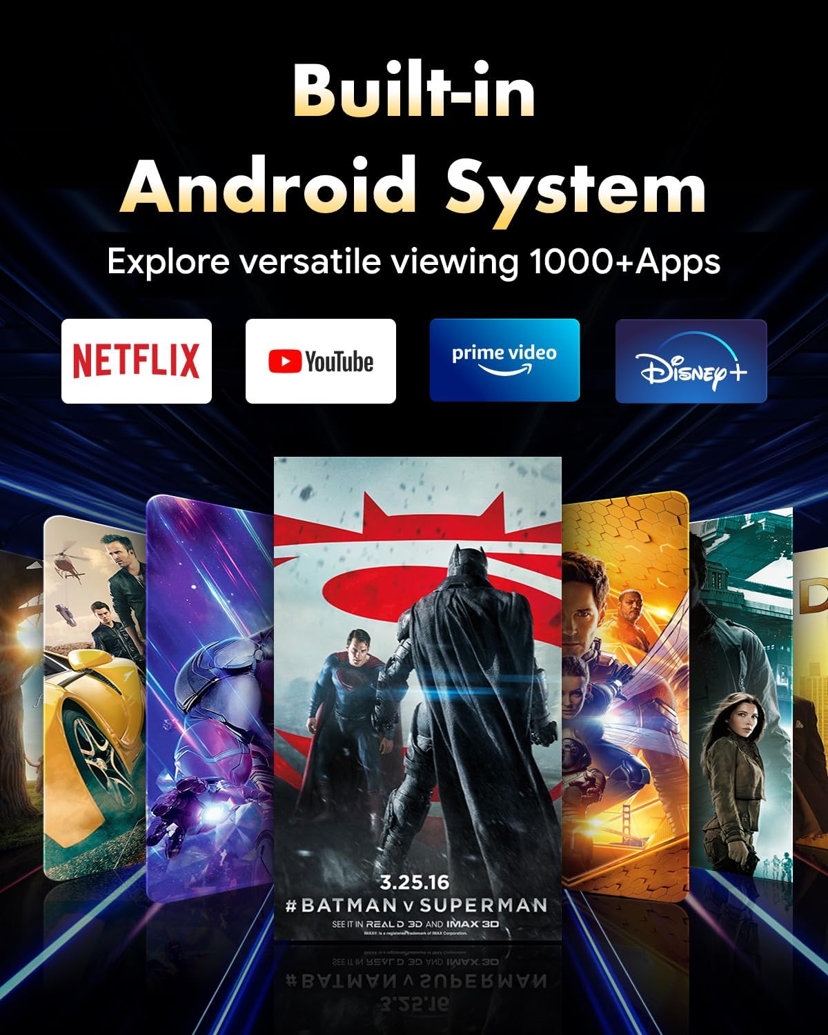 【Smart Projector】 The FreeONE embeds an Android OS, direct enjoyment of various movies and series from the projector itself, eliminating the need for external devices. Thanks to its exceptional compatibility, projecting from phones, laptops, PCs, TV sticks, gaming consoles, or Switch is effortlessly managed.