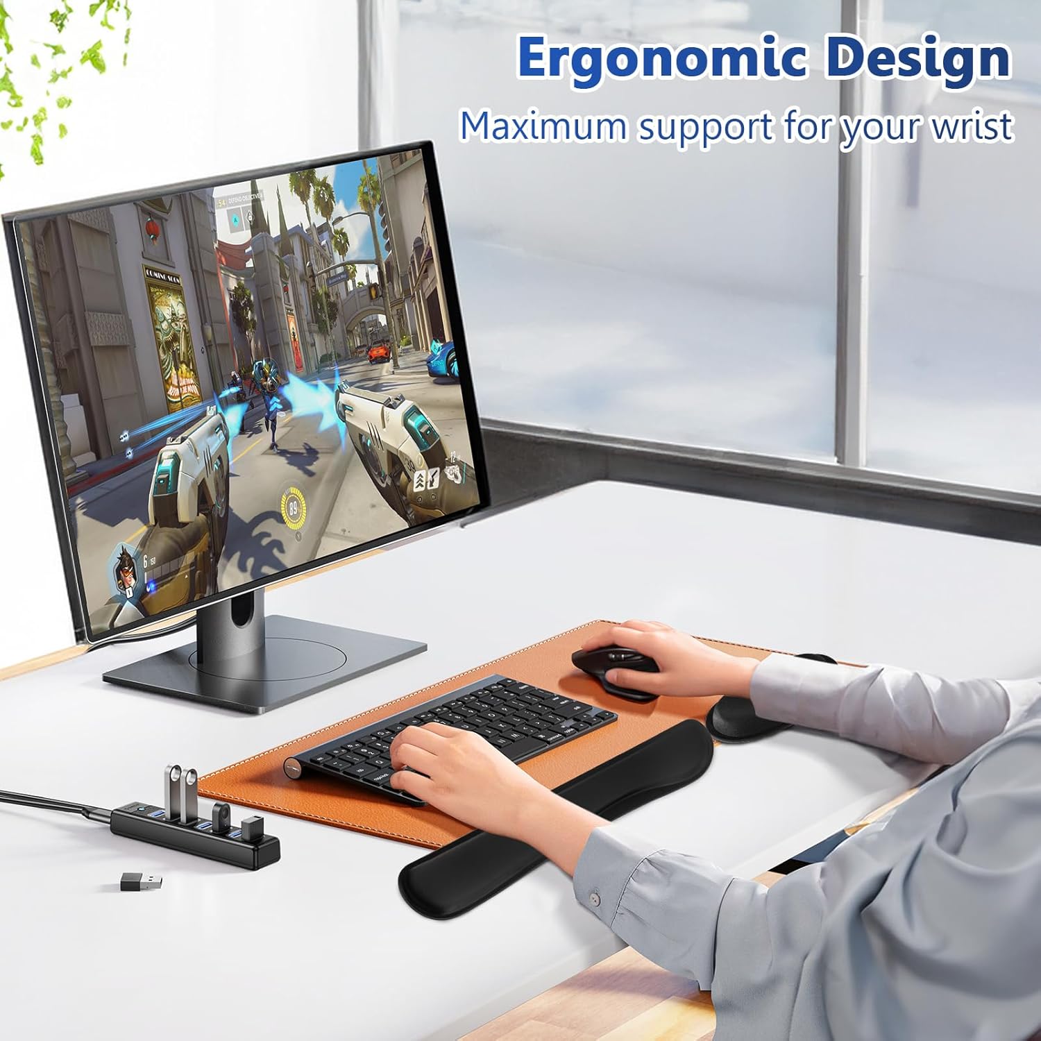 ✅【𝙀𝙧𝙜𝙤𝙣𝙤𝙢𝙞𝙘 𝘿𝙚𝙨𝙞𝙜𝙣】- Mouse wrist rest with grooves fits your hands better; Deformation-free keyboard pad, stay still while typing, easy and comfortable to use at home, office, internet cafe, etc. Wrists stay in a straight line instead of at an angle to the keyboard and mouse. Ergonomic design reduces typing pain.