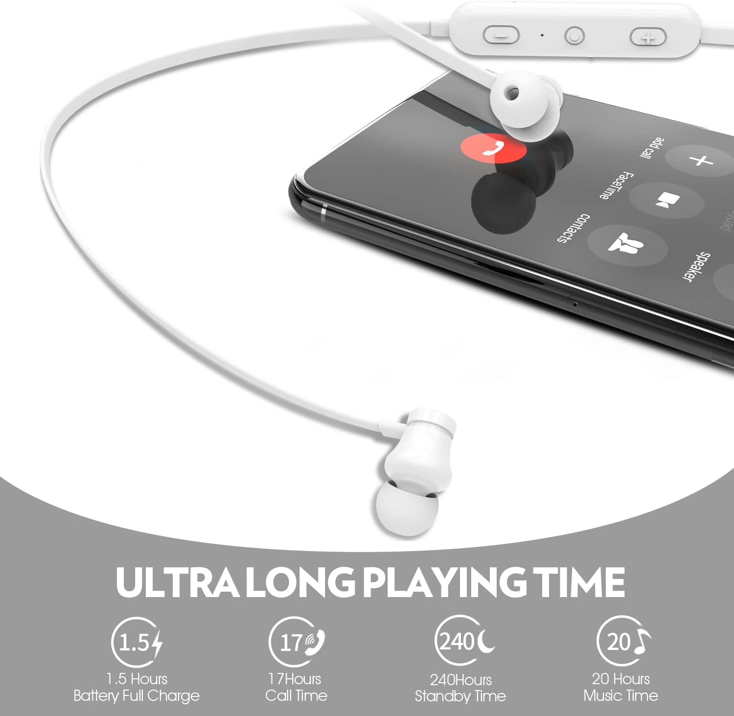 Ultra-light design and easy operation allow you to easily listen music when you exercise.3 different sizes ear tips brings less pressure to your ear canal.Magnet desgin can make earbuds attach to each other like a necklace around your neck when not in use.Up to 20 hours per charge battery life and 10X24 hours super long standby time make your constant listening music life infinitely easier.