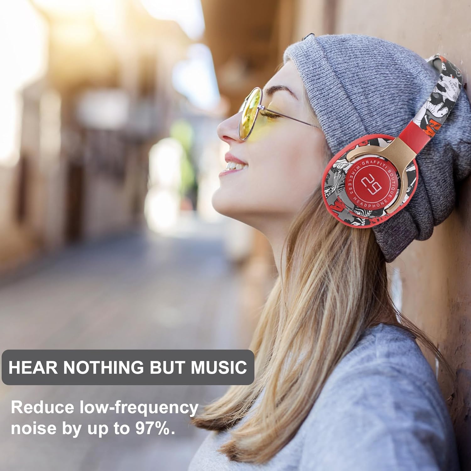 ๐ข ๐๐ญ๐๐ซ๐๐จ ๐๐จ๐ฎ๐ง๐ใThe bluetooth over ear headphones design inspired by street graffiti art for young, it looks very stylish and Unique. This wireless headphone can connect to most bluetooth devices: pad, laptop, PC, cellphone etc. Equipped with high-quality drivers, Whether you’re listening to music, watching a movie, or engaging in a call, expect HiFi stereo sound quality that will fully immerse you in the moment.