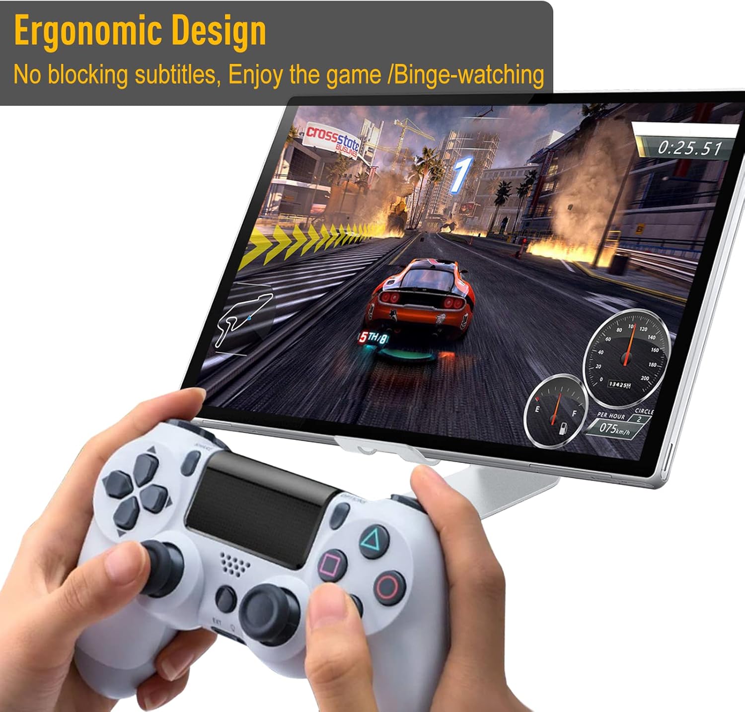Cell Phone Stand,Desk Phone holder for Office, Home, Bed, School. Cute Desktop Facetime Phone Holder,Metal Phone Dock Cradle Compatible with Switch iPhone 14 13 12 11 iPad Mini, Tablet (Silver)