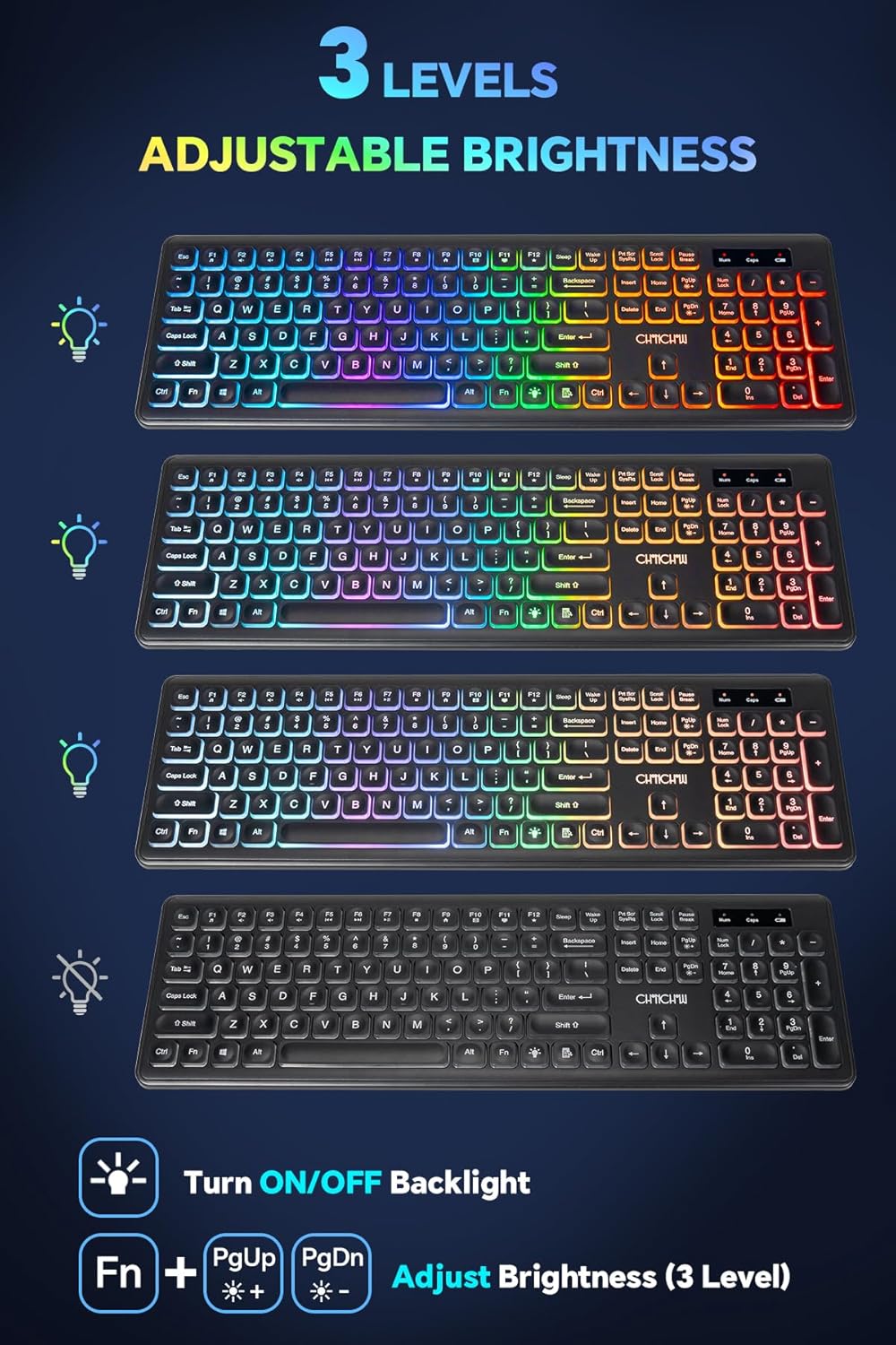 CHONCHOW Wireless Keyboard and Mouse Rechargeable LED Combo RGB Backlit Silent USB 2.4g Mini Multi DPI for Work Gaming Compatible with Windows Mac Iinux