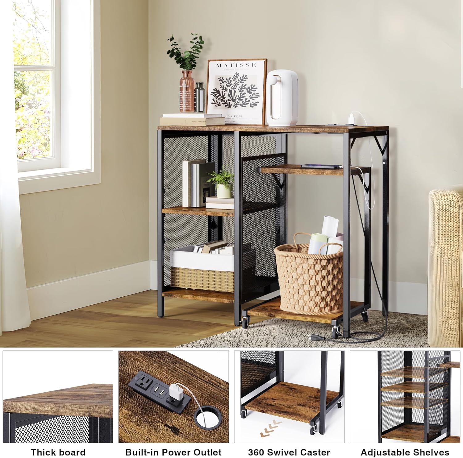 Colima Printer Stand with Charging Station and USB Ports,Paper Shredder Stand with Storage and Adjustable Shelves, 3 Tier Printer Table with Storage, Printer Table for Home Office, Rustic Brown