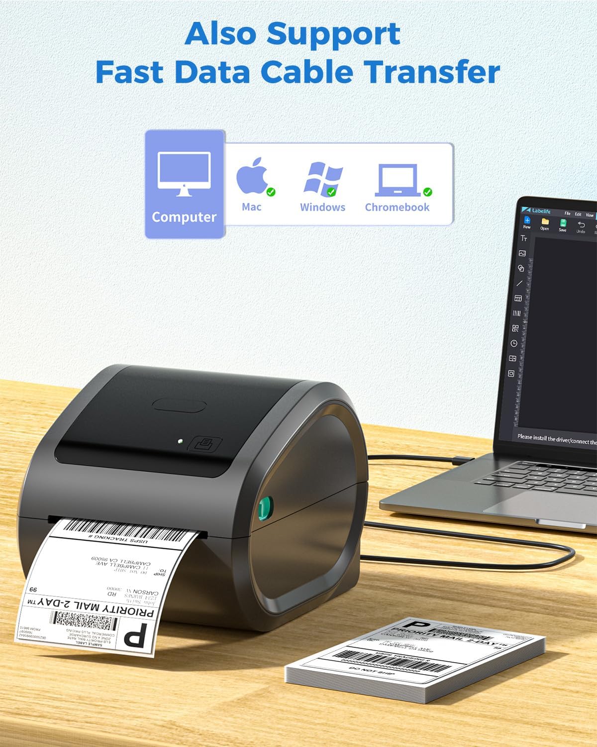 【Versatile & Compatible With Various Devices】The bluetooth shipping label printer is available for most platforms (mac, pc, android, iphone). and the shipping label printer for small business that will allow you to print shipping labels while on the road from your phone or ipad.