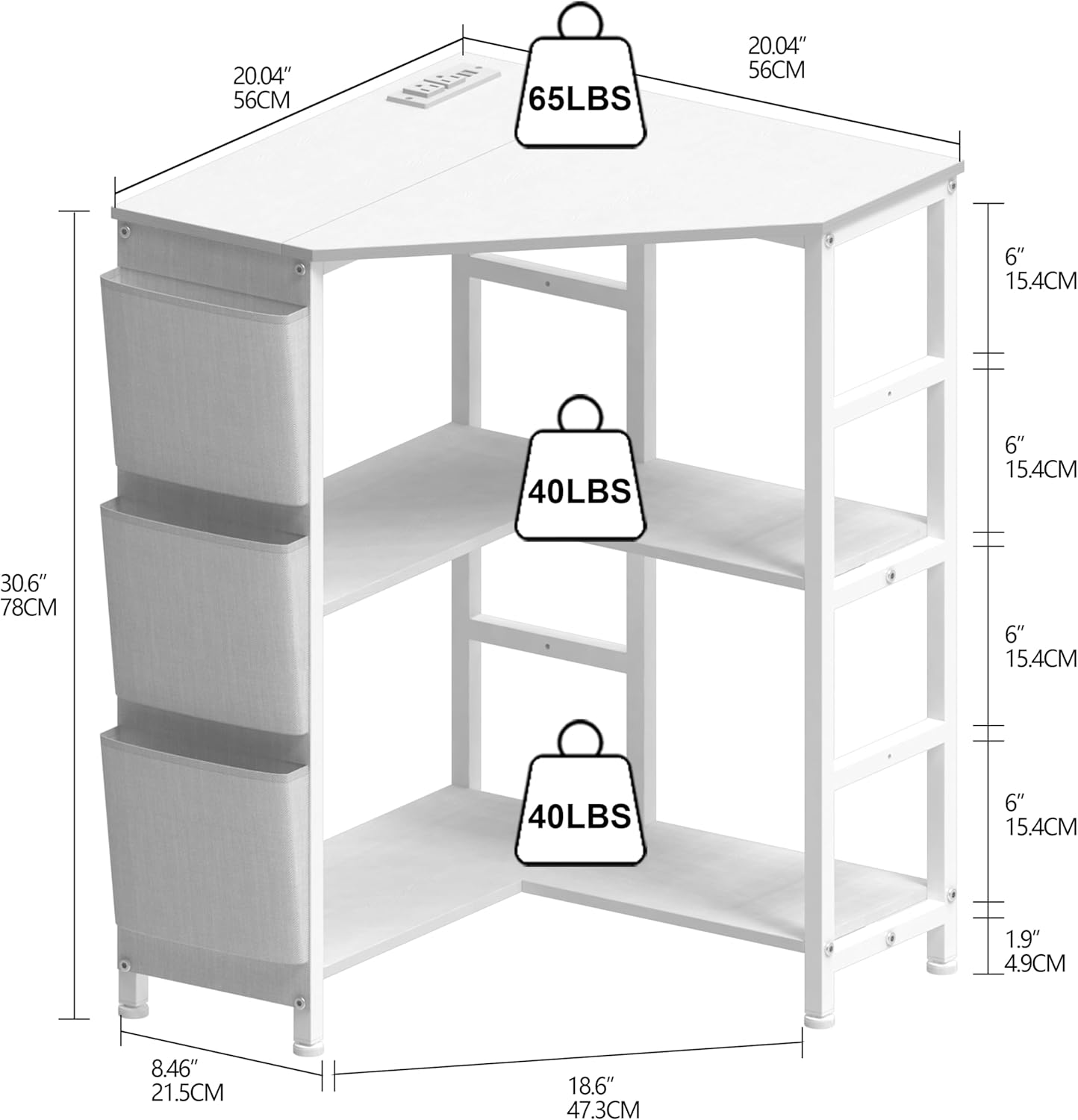 【Corner Printer Stand】The dimensions of the desk are (L x W x H). This corner table has a 90-degree triangle design that fits nicely in a corner and maximizes space utilization in your room. The ample workspace provides plenty of room for your computer, printer, documents, books, and other office supplies. The large size also allows you to spread out and work comfortably.