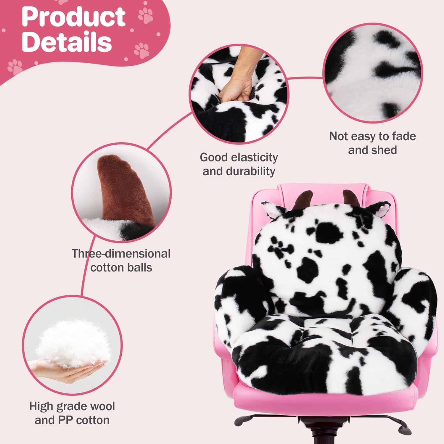 Cute Computer Chair Cushion Cow Gaming Chair Cushions Comfy Seat Cushion,Kawaii Desk Cushion for Gamer Girl Gifts,Plush Chair Cushion with Backrest Non-Slip,Gaming Accessories for Room