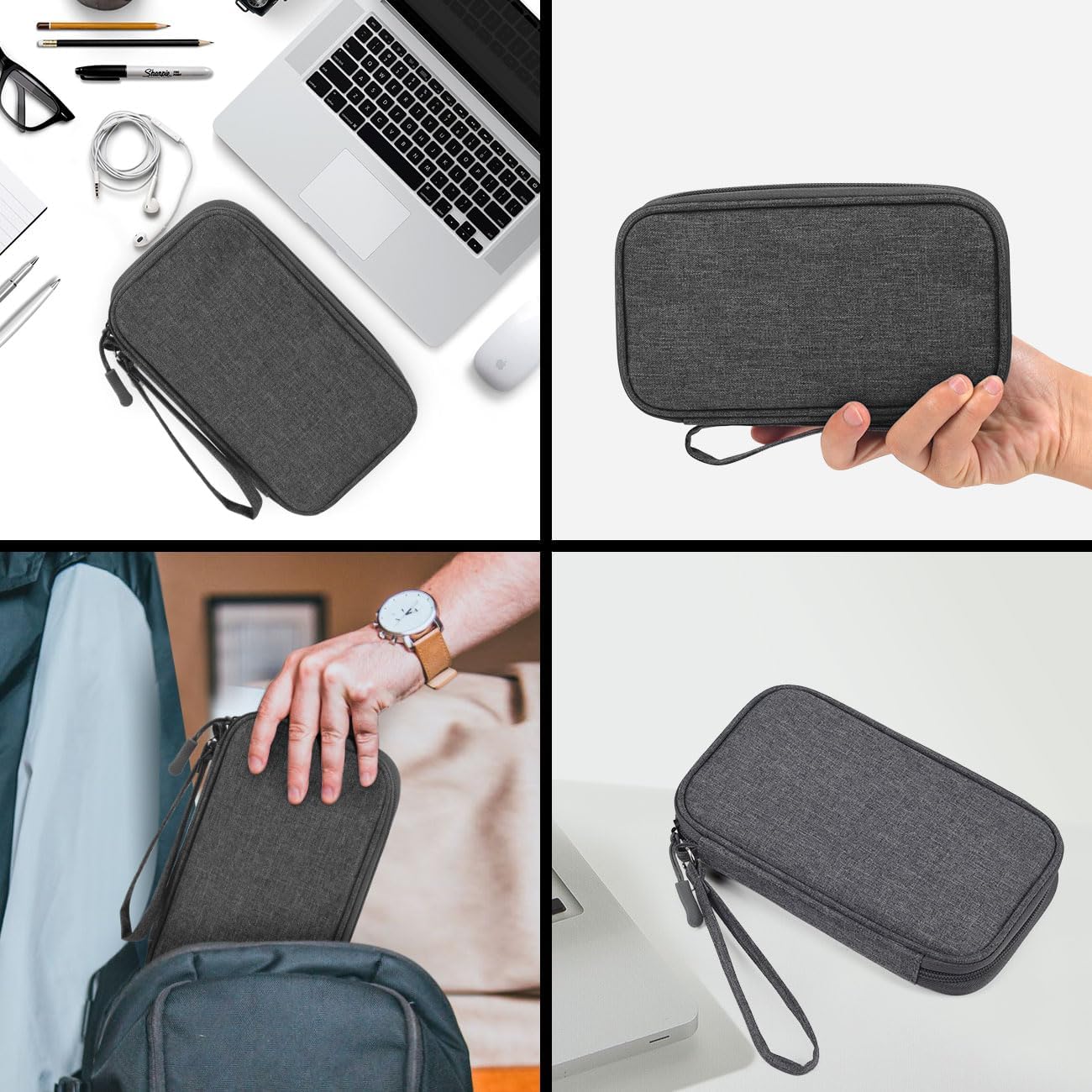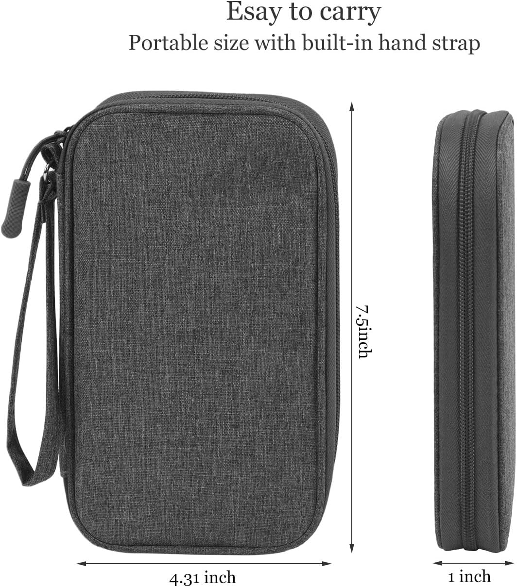Applications:It can hold power adapters, charger, batteries, power bank,hard drive, memory cards,digital camera,pen,selfie stick,cables, external driver, flashdrive, basic first aid items, chargers, several USB cables, scissors, makeup, passport ,memory cards,key, smartphones and such. This cable organizer bag great for storage everything to travel and family use