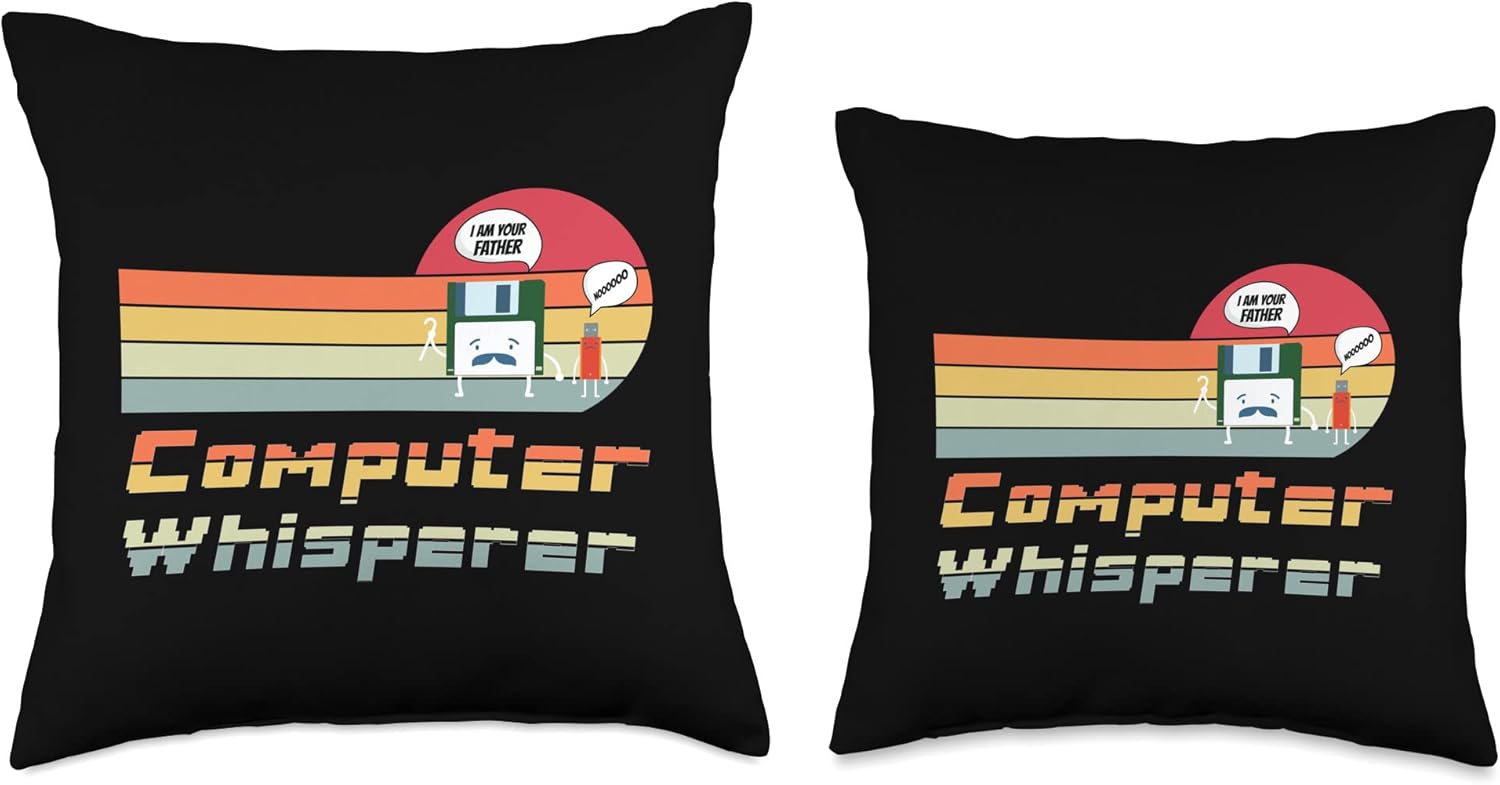 Father & Son Floppy Disk Engineer Programmer Or Coder Geeky Throw Pillow, 16×16, Multicolor
