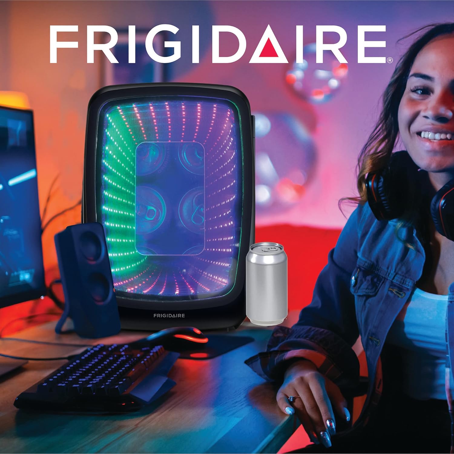 Frigidaire EFMIS179 Gaming Light Up Mini Beverage Refrigerator, Stealth