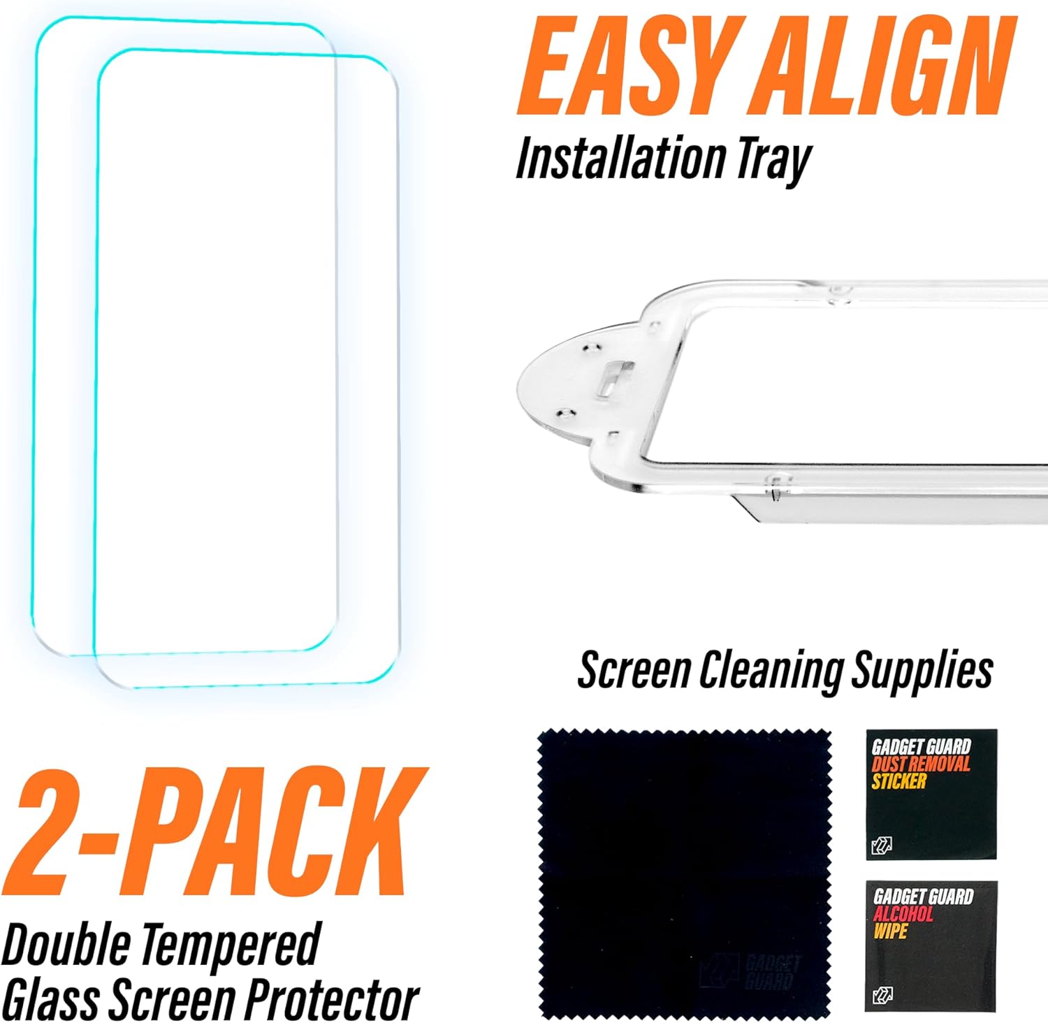Gadget Guard Apple iPhone 15 Compatible Screen Protectors Pro-Active, 2 Pack – Easy-Align Installation Tool Included