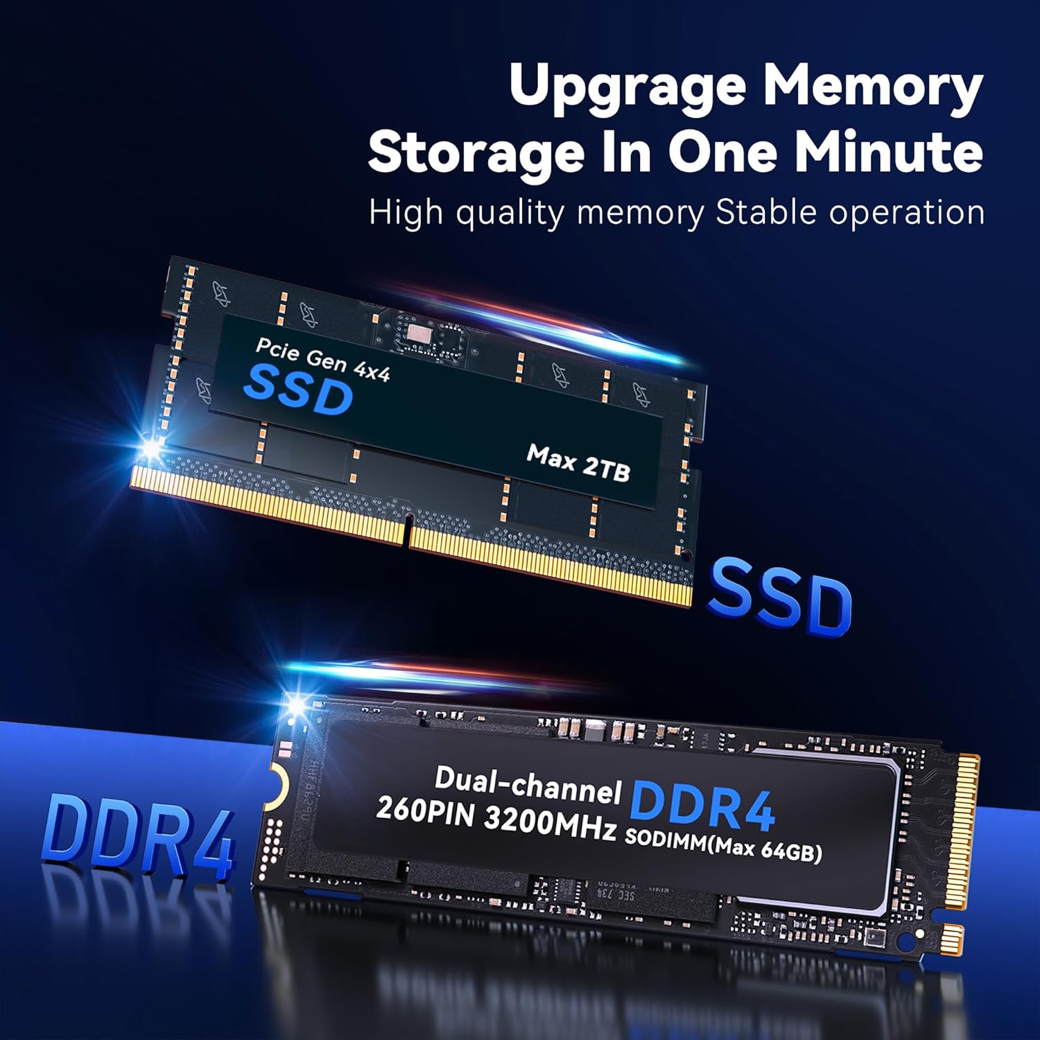 ✔️【Dual-channel 32GB DDR4 + 1TB PCIe GEN4 SSD】GEEKOM XT13 Pro mini pc Windows 11 Pro with high-speed 32GB dual-channel DDR4-3200MHz RAM (upgradeable to 64GB), i7-13620H comes with a superfast M.2 PCIe4.0*4 2280 NVMe SSD of up to 2TB. That way, it can support tasks like memory-hogging multitab browsing and opening a huge graphic file quickly and easily. If you want more storage space, you can also add a 2.5″” SSD (no included) to expand the memory upgrade storage to 2TB to expand the memory wonderful safety data bank.