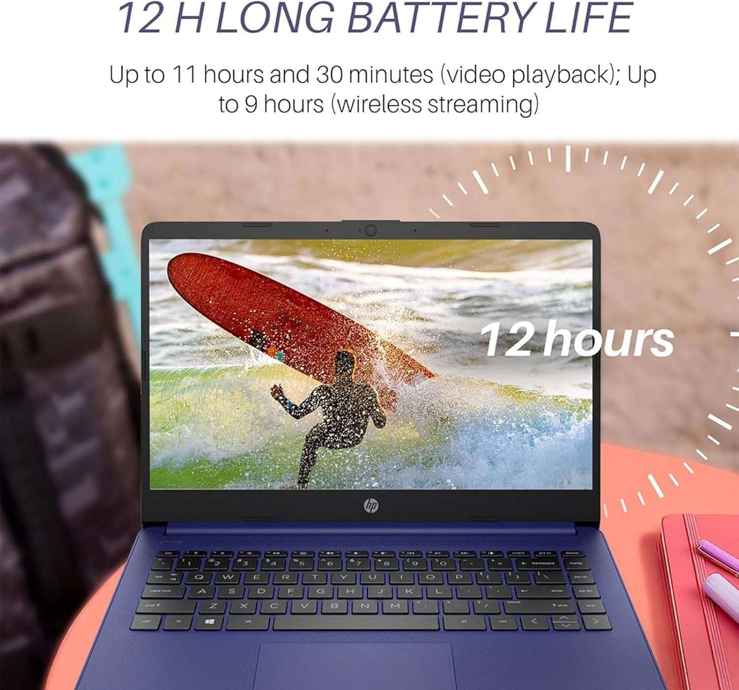 Impressive 14 inch Display: HP 14 laptop comes with a vibrant 14 inch screen with narrow bezel, providing a wide, immersive viewing experience. Ideal as a school laptop or for entertainment, it delivers sharp, clear images.