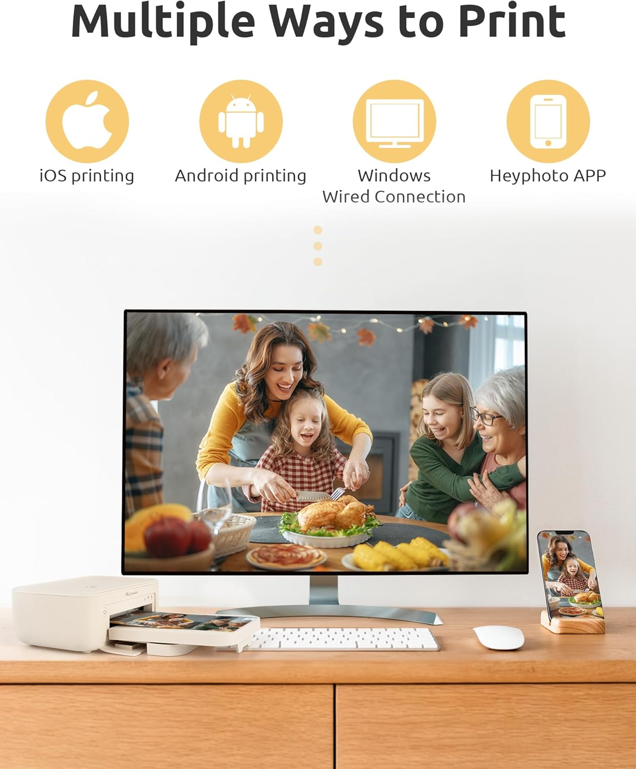 Superior Photo Quality: The high resolution of 300 DPI ensures that your photos will come out clear and vibrant. The dye-sublimation printing process used by this printer creates smooth and beautiful colors, resulting in exquisite and long-lasting photos. The photos are also protected by a transparent film, preventing dust, water, fingerprints, and scratches, ensuring your memories are preserved for years.