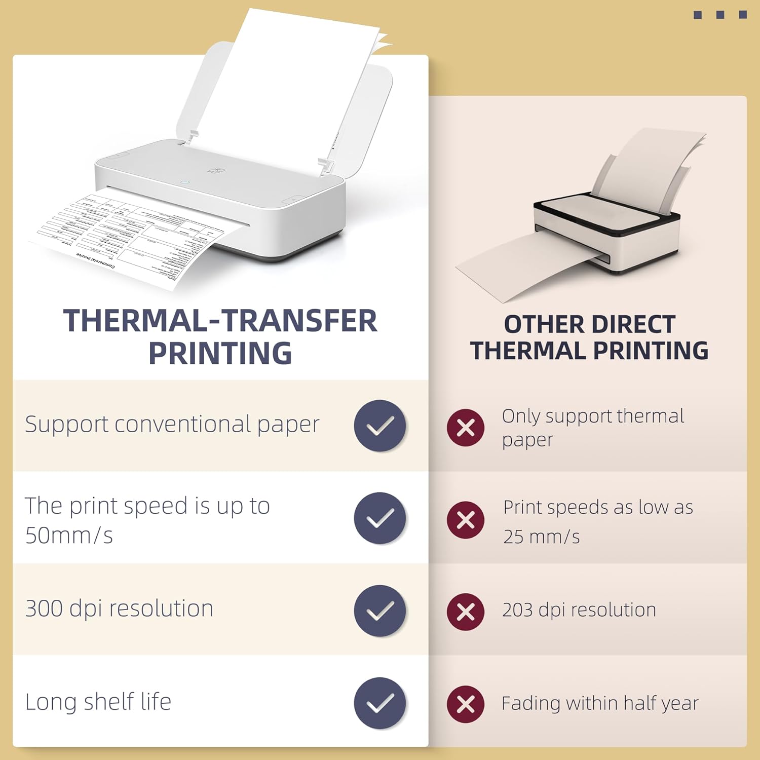 Inkless Home Printer: This A4 printer for home uses advanced thermal transfer technology and requires only the replacement of a solid ribbon. This feature helps to avoid printer head clogs and the need for frequent ink changes, providing a cleaner and more organized printing experience. Additionally, prints using this printing method are fade-resistant, waterproof, oilproof, scratch-resistant, and can be stored indefinitely.