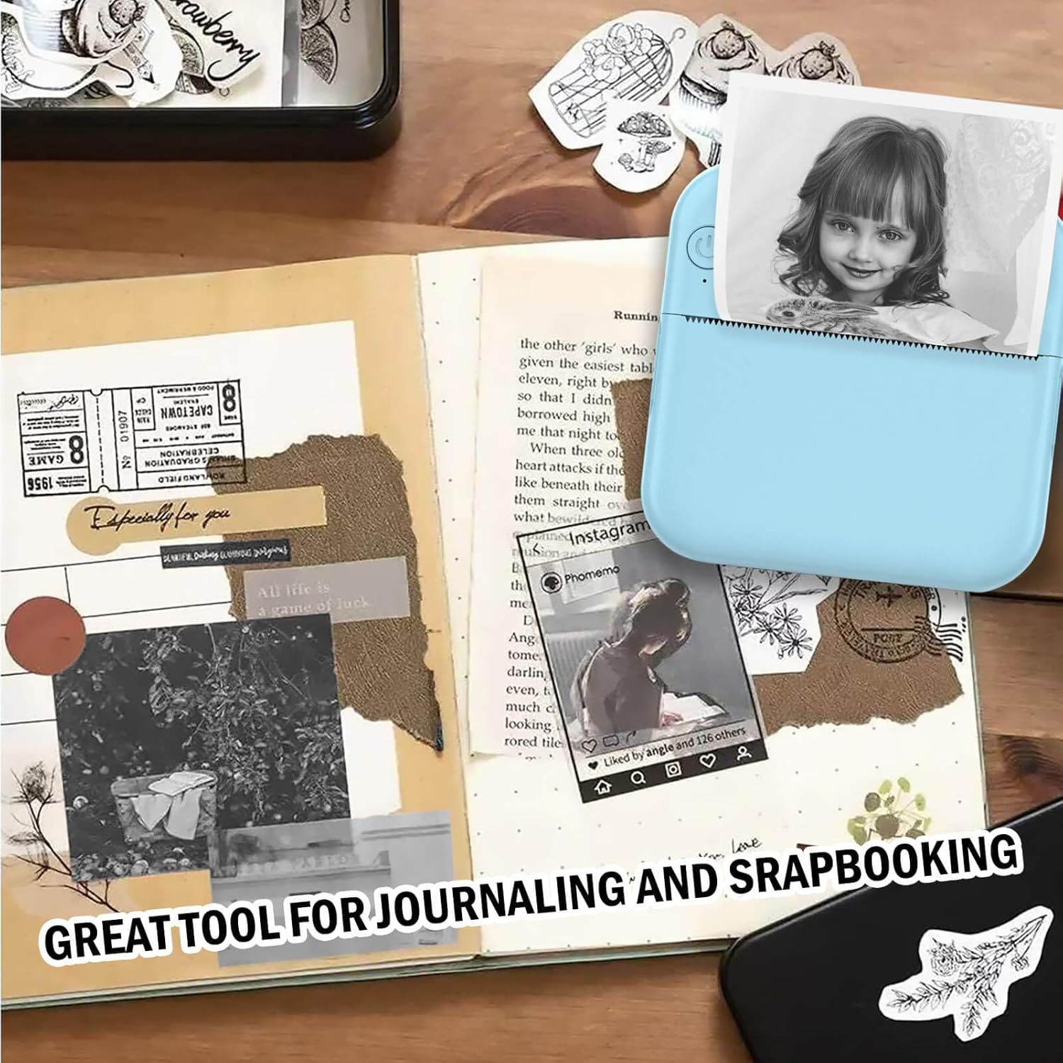 Multipurpose Uses — You can choose pictures from your phone album, write your text, or make labels, journals, notes, barcode, QR codes, receipt, etc. Kids can use this inkless pocket printer to print blank templates, fill color to exercise their imagination, also can use it to print learning materials or study notes. Parents can use this mini portable printer to organize shopping/to do lists, work plans or more, a great tool for all ages.