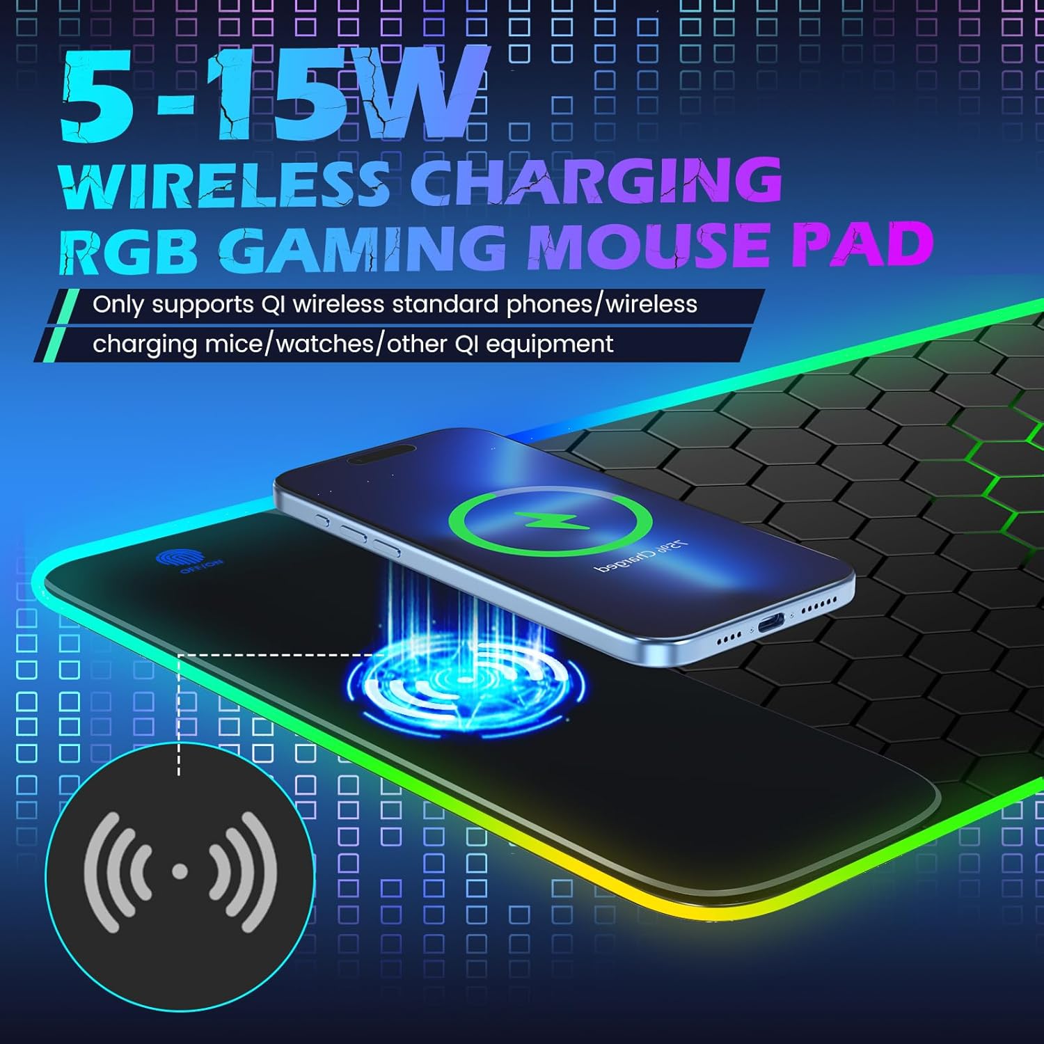 iLeadon RGB Gaming Mouse Pad, Wireless Charging Mouse Pad 5/7.5/10/15W Auto Adjust, 10 Light Modes LED Mouse Pad Non-Slip Rubber Base Computer Keyboard Mat Mousepad for Gaming, Work, Honeycomb