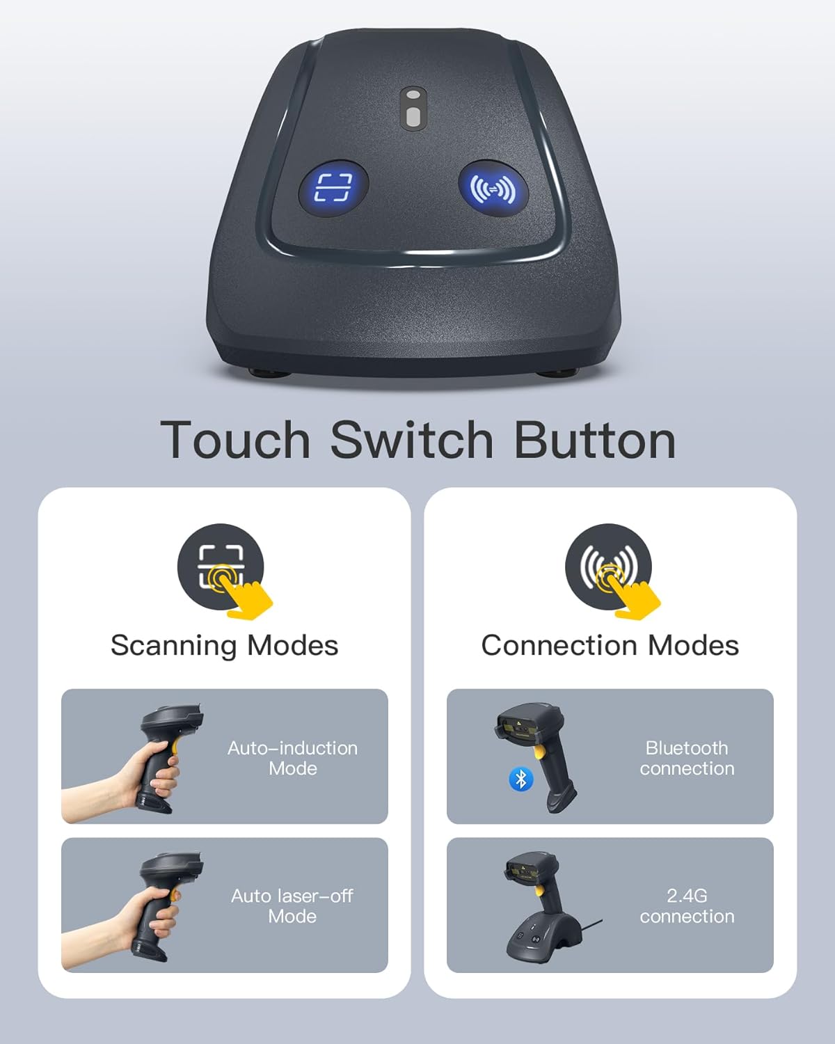 Three Connection Modes: This scanner supports three connection modes, including Bluetooth, 2.4G base, and wired connections to meet various requirements.