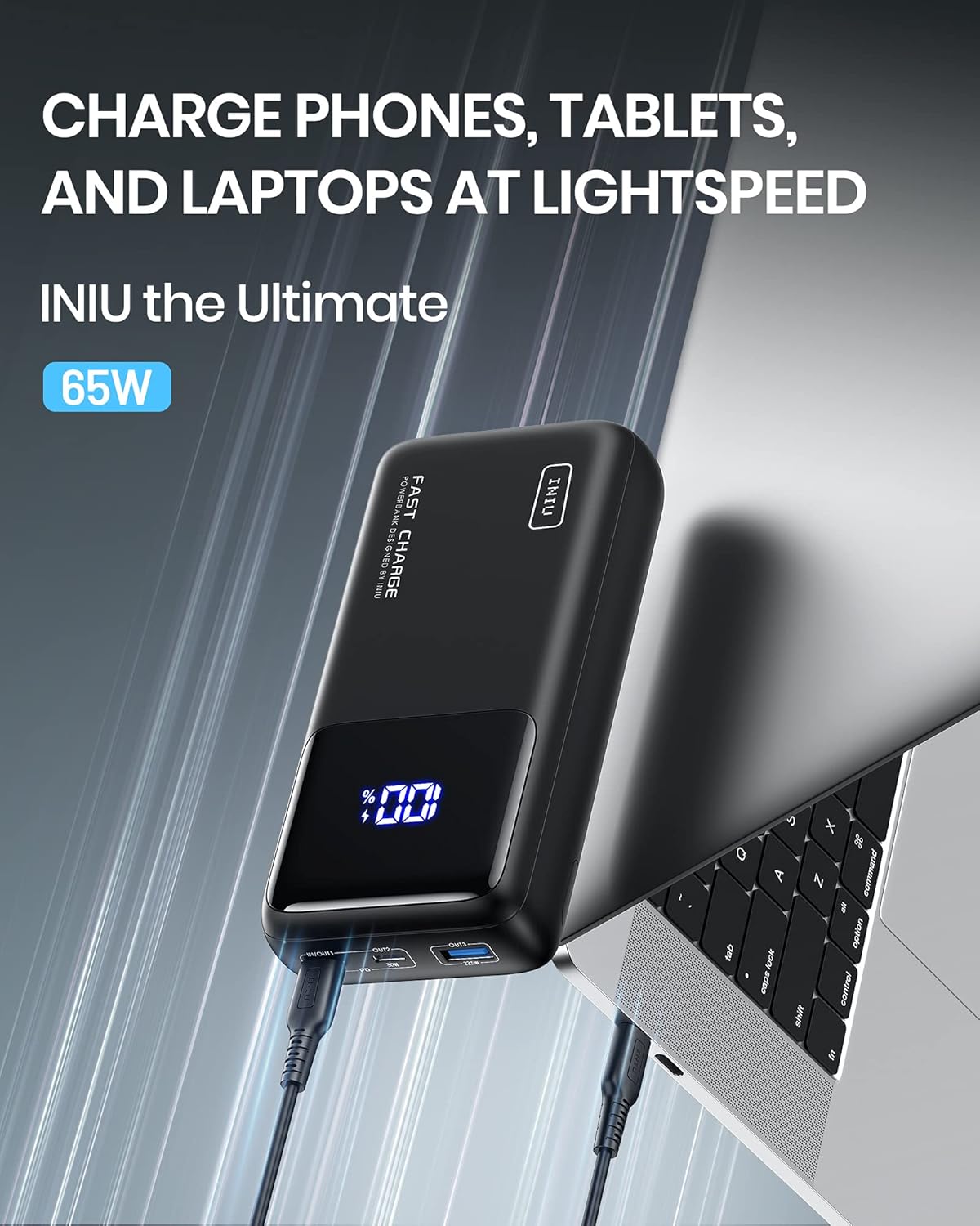 INIU Power Bank, 25000mAh 65W USB C Laptop Portable Charger, PD QC Fast Charging 3-Output External Battery Pack for Laptop MacBook Dell XPS iPad Tablet Steam Deck iPhone 15 14 13 Pro Samsung S22 etc