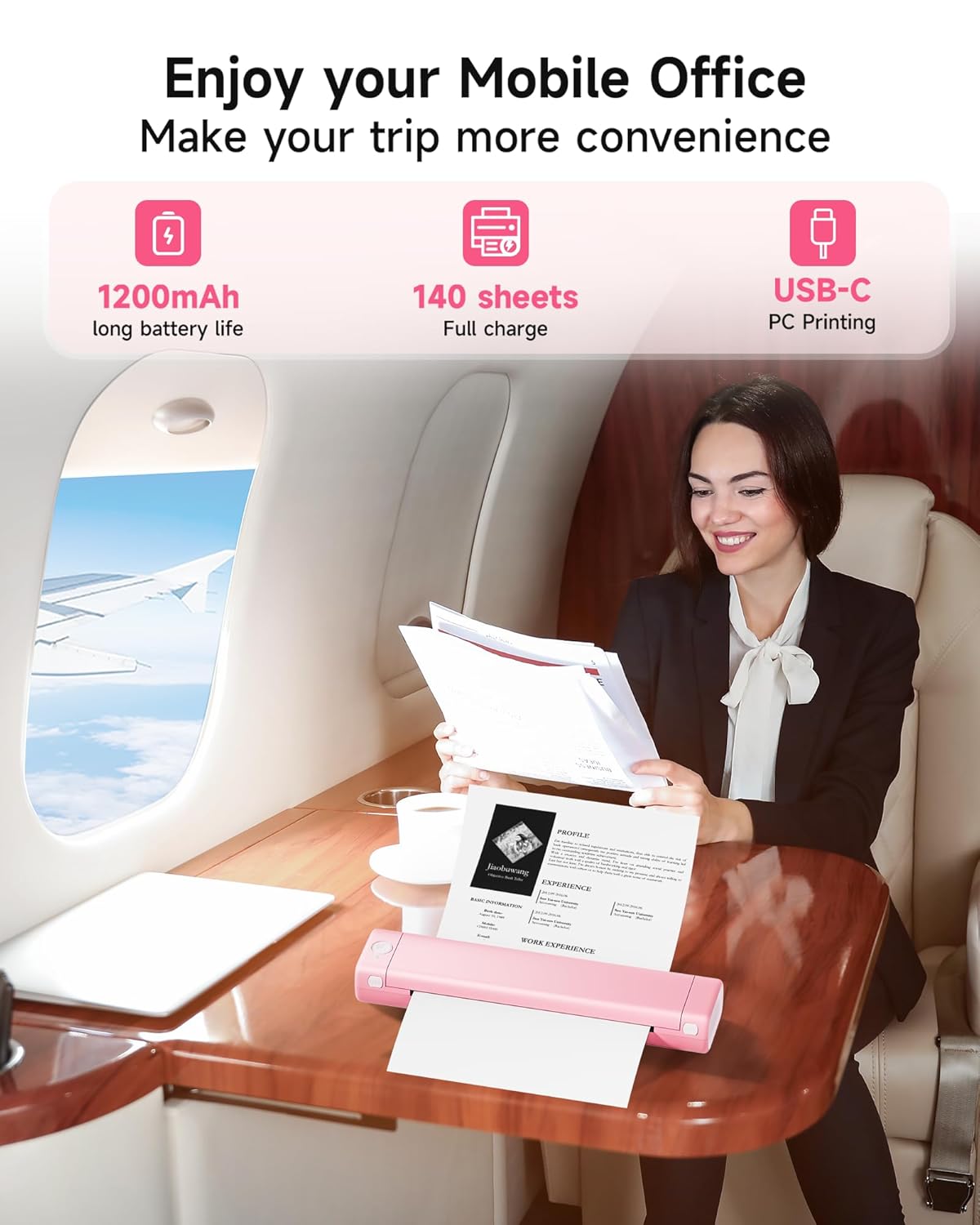 Long Battery Life – This travel printer has a built-in 1200mAh lithium battery, which can last for 20 hours when fully charged, and can print 140 sheets of 8.5″ X 11″ US Letter thermal papers (Maximum paper width: 216mm/8.5 inches), which is a great helper for the emergency scenarios, such as assignments, study materials, contracts, office documents,inventory list, business check, shipping labels, invoice etc.