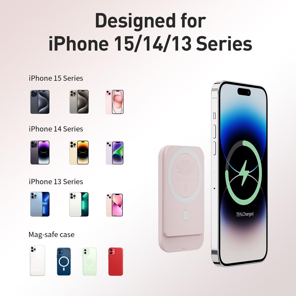 Compatibility: This portable charger is special designed for iPhone 12/13/14/15 series without a case, or in a magnetic case. And you can also charging other device via a cable, comes with an USB-C TO USB-C cable .