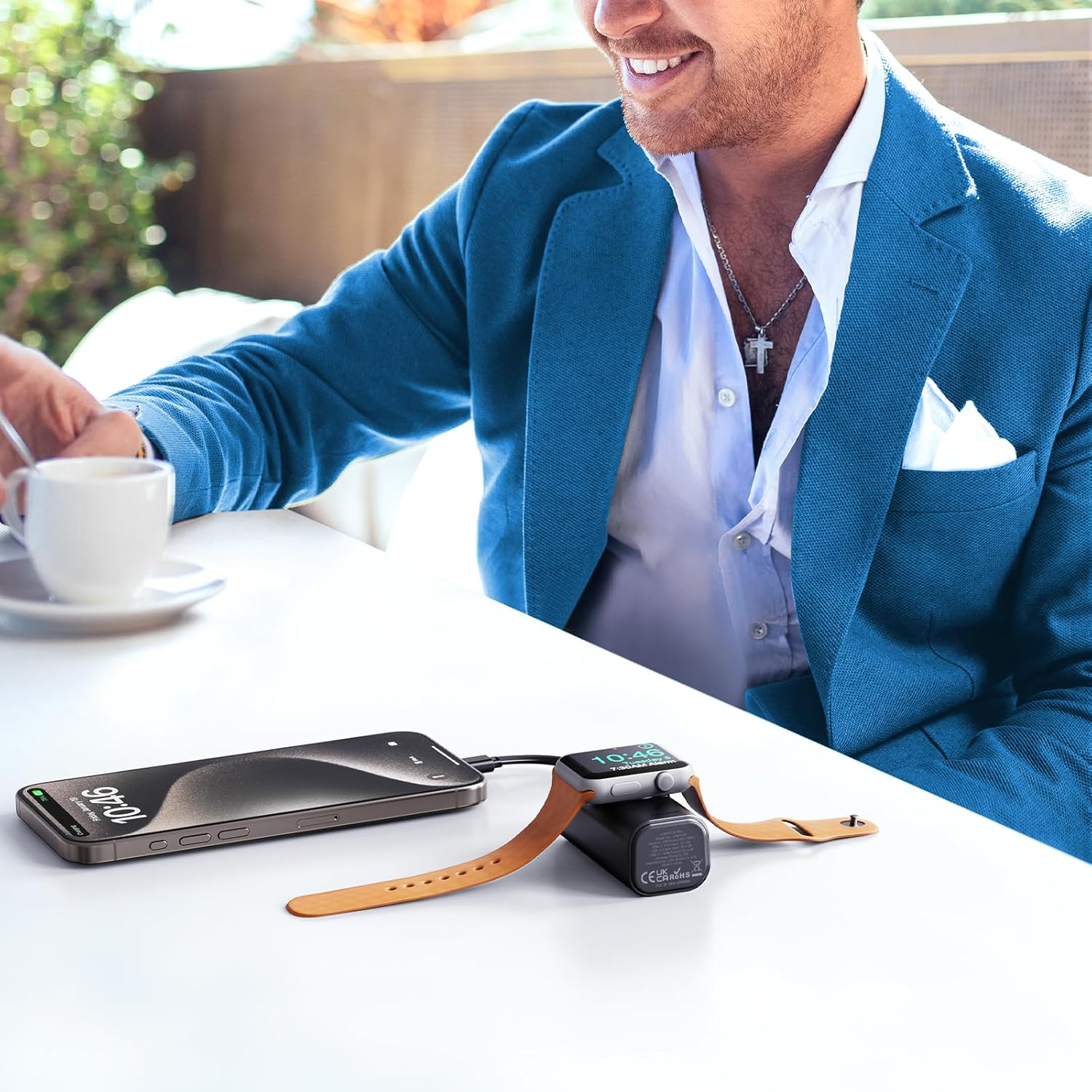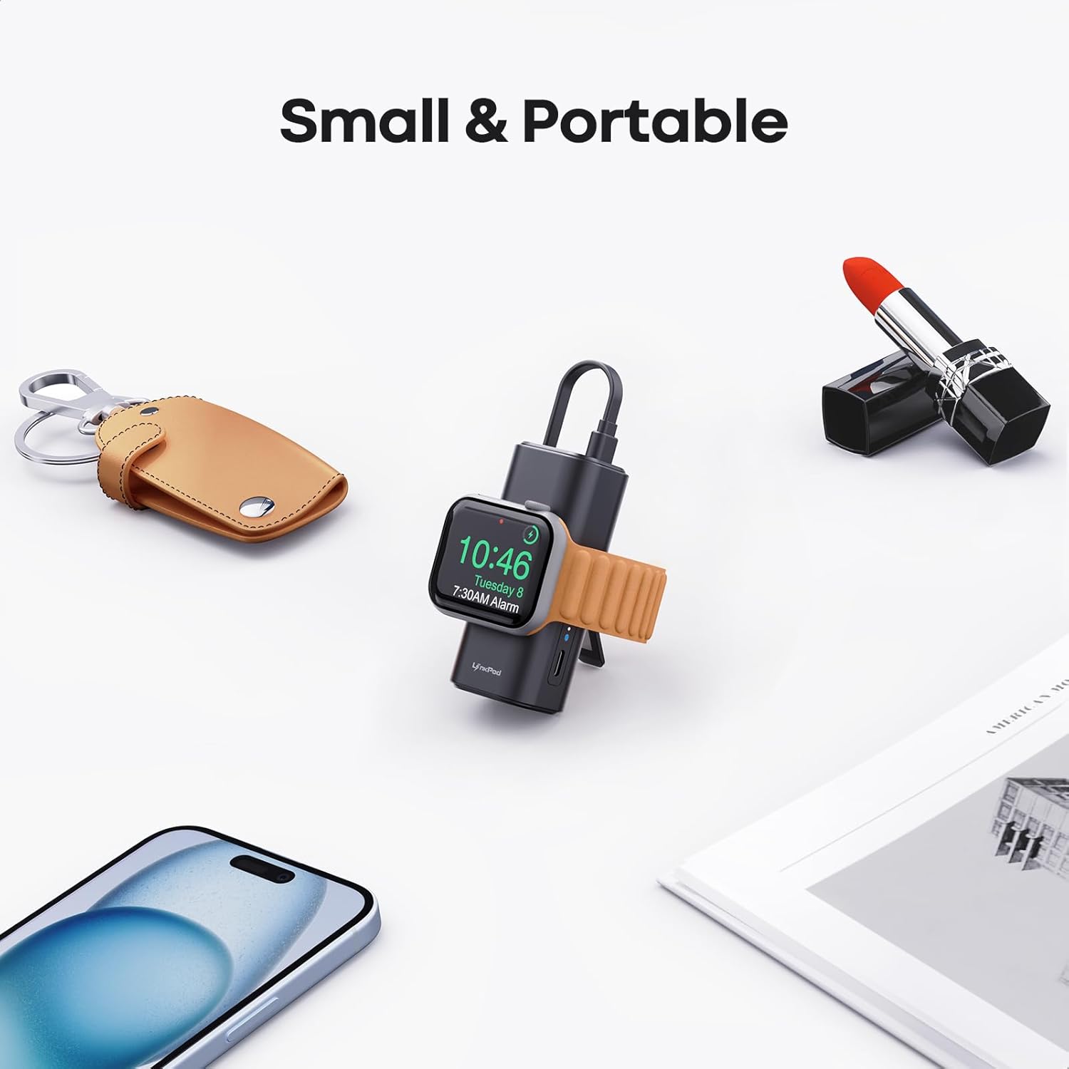 This portable power bank’s wireless charging compatible with Apple Watch 9/8/7/6/5/4/3/2/SE/Ultra.