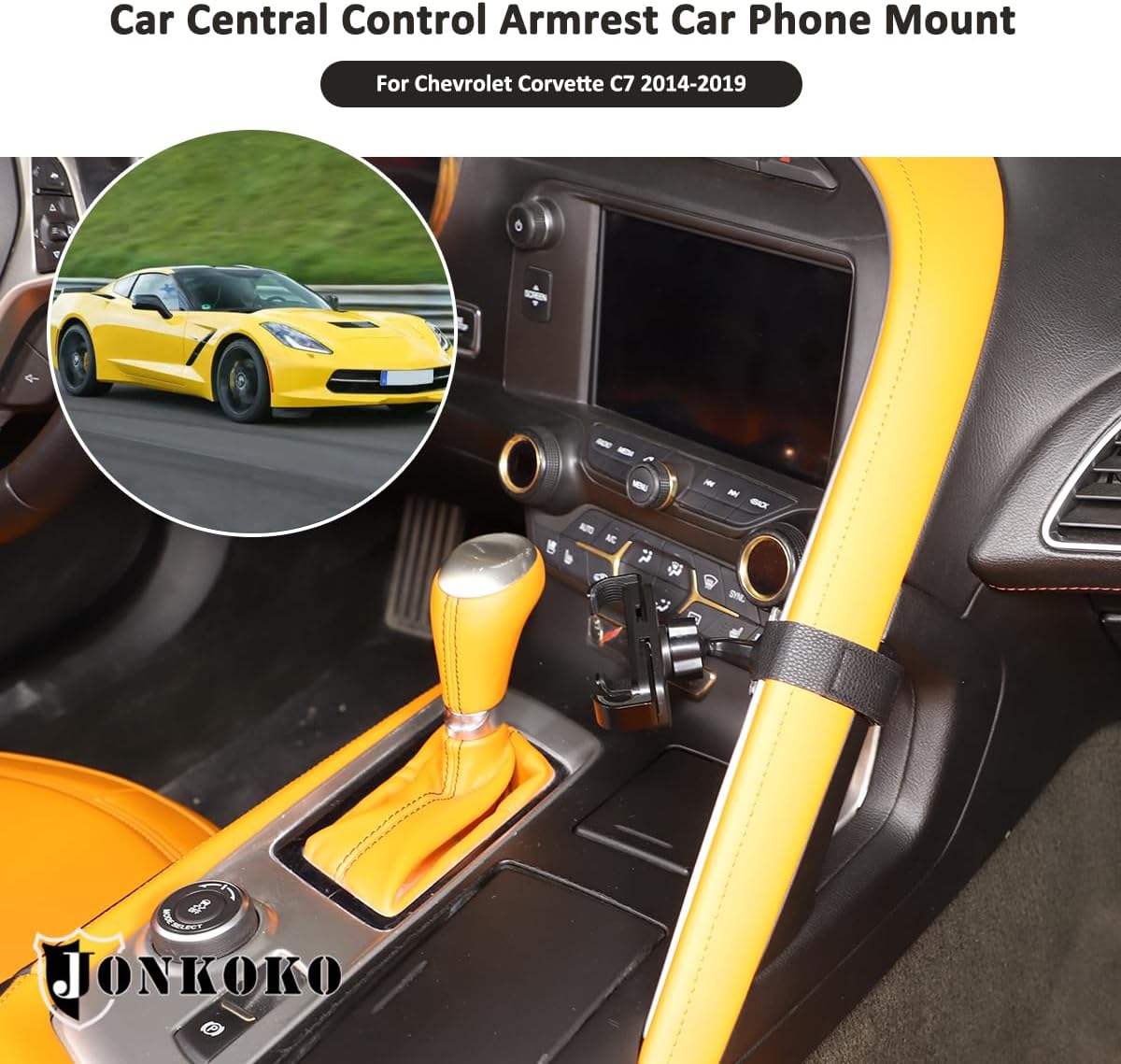 JONKOKO Car Central Control Armrest Car Phone Mount for Chevrolet Corvette C7 2014-2019 Auto Mobile Phone Holder Accessories