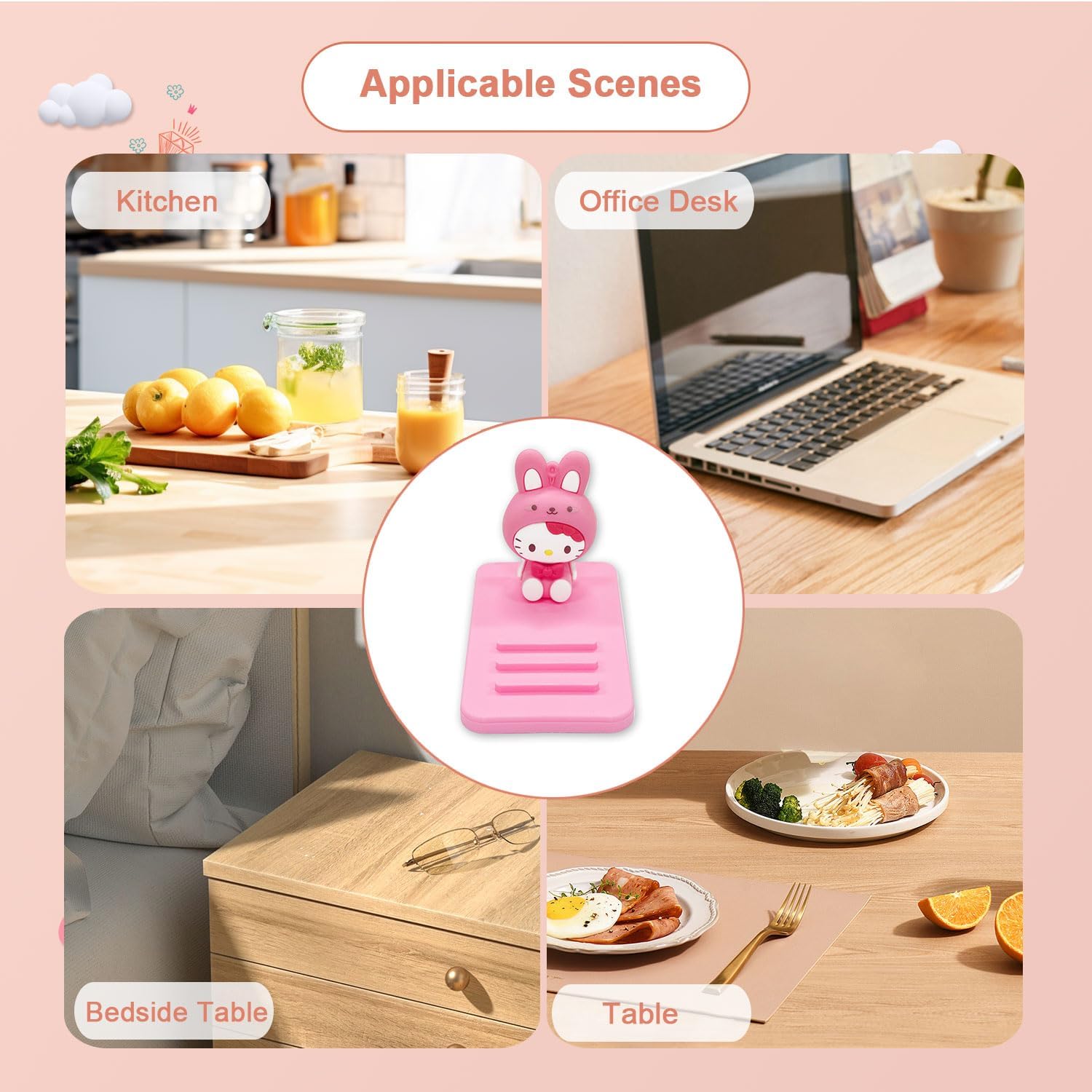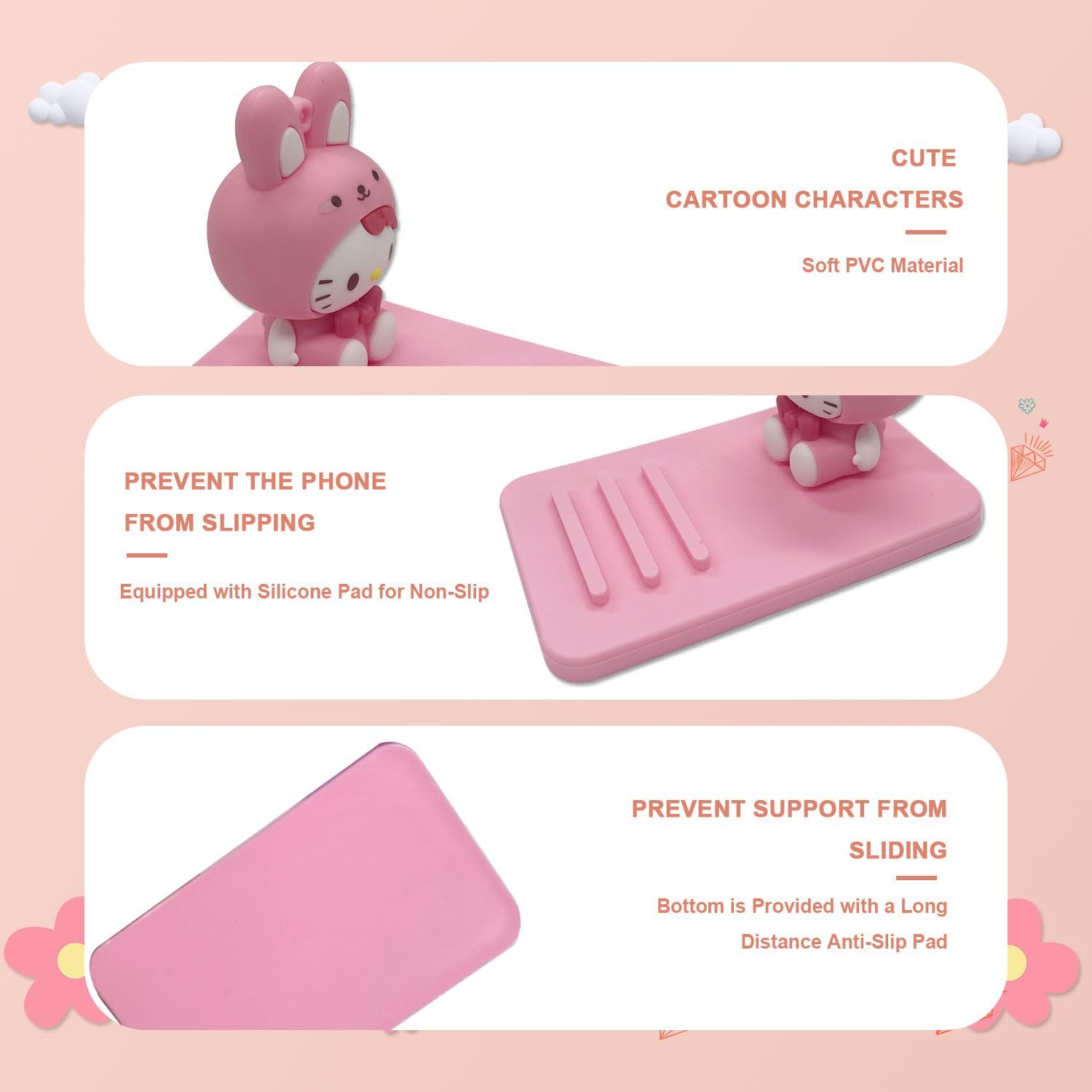 Kawaii Kitty Phone Holder for Desk, Cute Phone Stand for Women, Compatible with All Mobile Phones, Pink