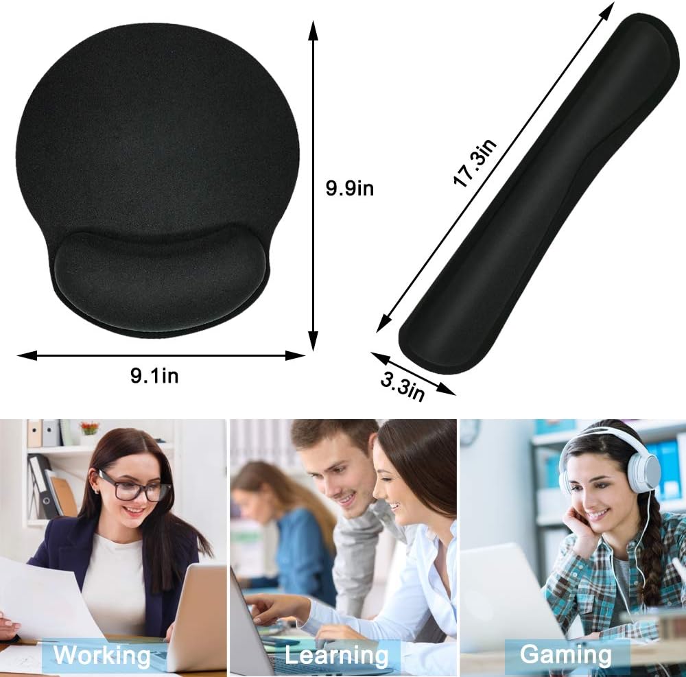 Keyboard Wrist Rest Mouse Pad Wrist Support Pads for Keyboard and Mouse, Ergonomic Memory Foam Wrist Pad for Pain Relief and Easy Typing, Arm Rest for Home & Office Laptop Computer, Black