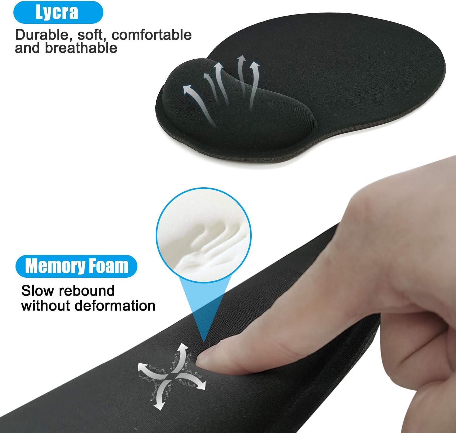 Soft Comfortable & Durable- Made of environmentally friendly materials, slow bounces back memory foam and durable breathable lycra material, non-toxic and no chemical odor. Fine workmanship ensure the wrist support no easy to be deformed and perfect for long time using. The smooth lycra surface ensure the accurate mouse movement, improve tracking movements and create consistent gliding.