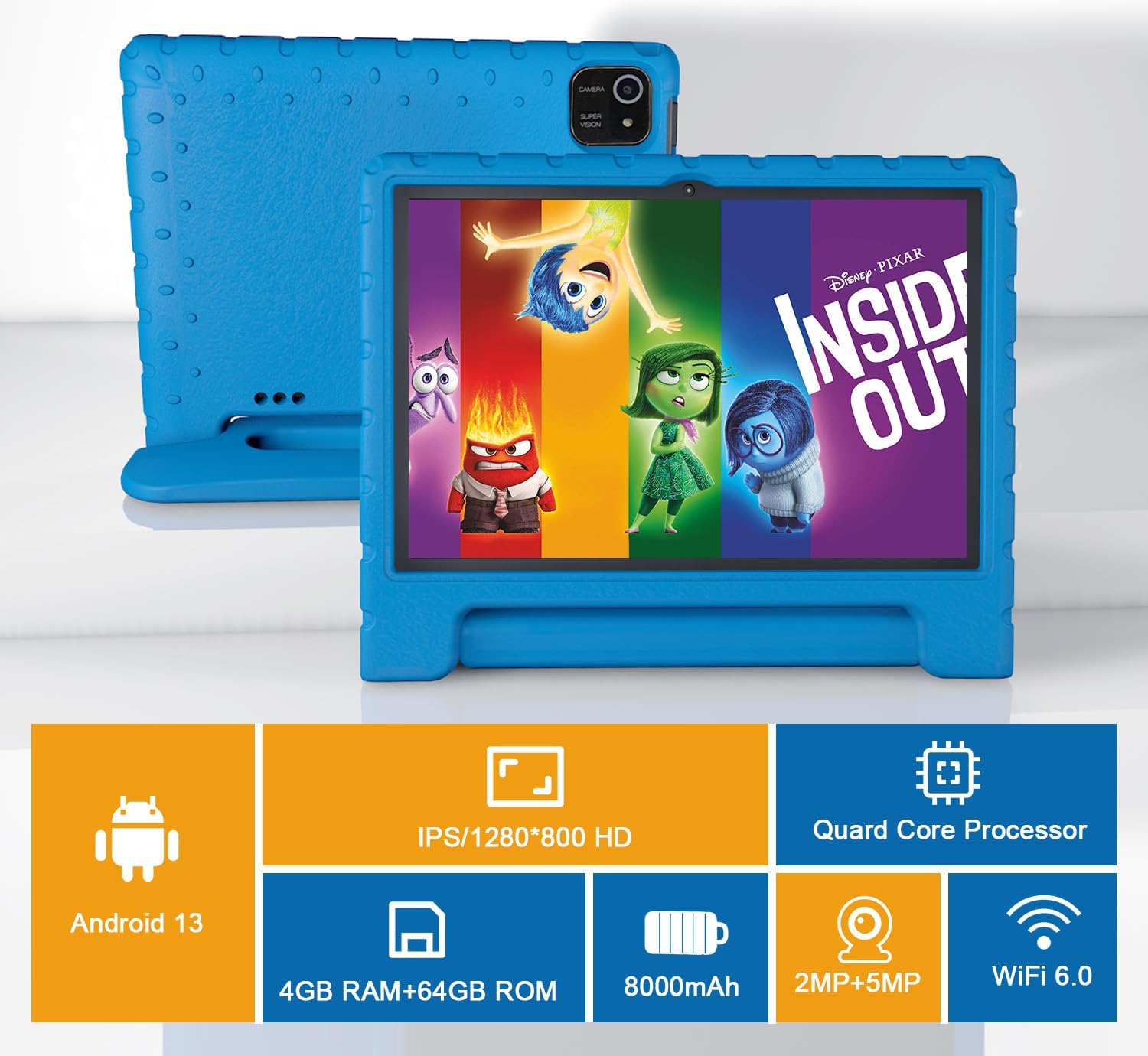 Kids Tablet 10 Inch, Android 13, 4GB+64GB, 8-Core CPU, WiFi 6, 12H Battery Life, Parental Control, 1280 * 800 HD Display, Dual Cameras, Shockproof Case, Pre-Installed Educational Apps