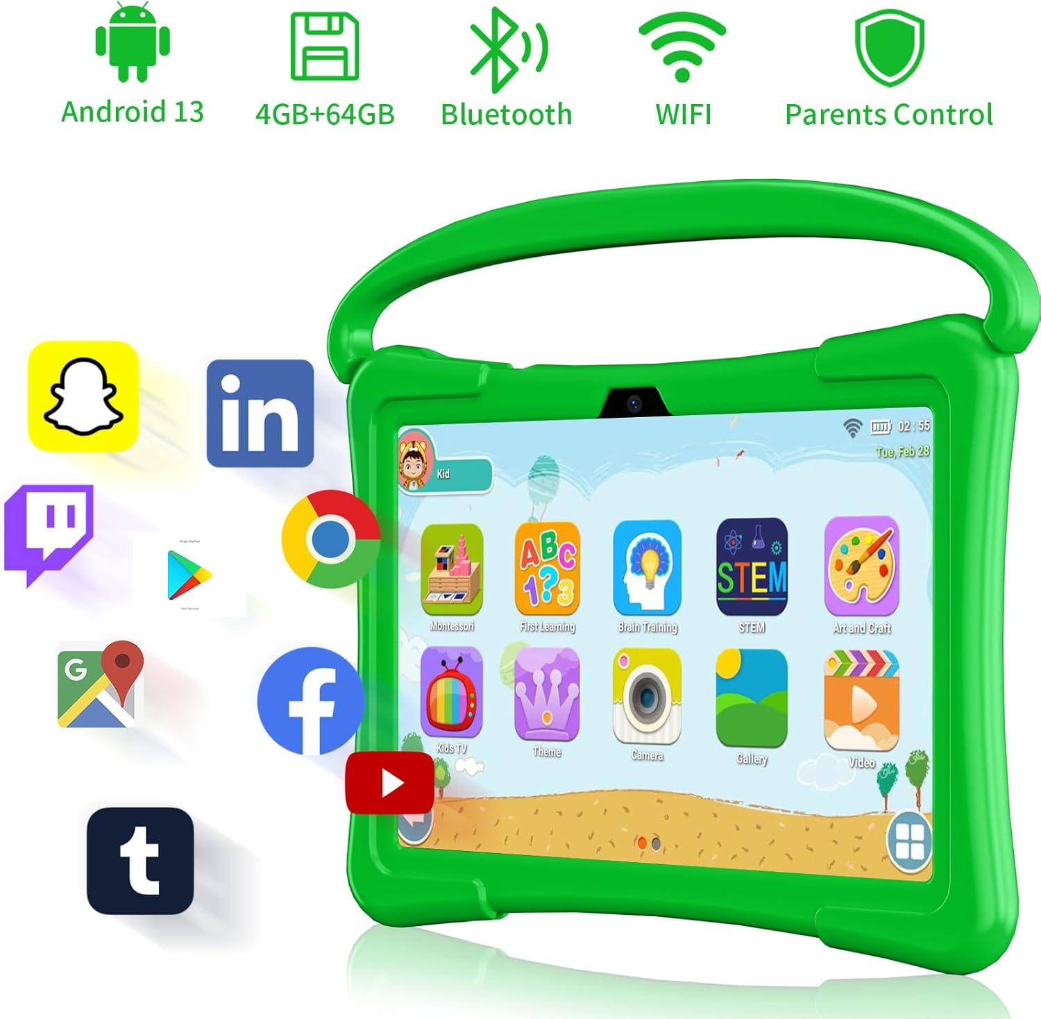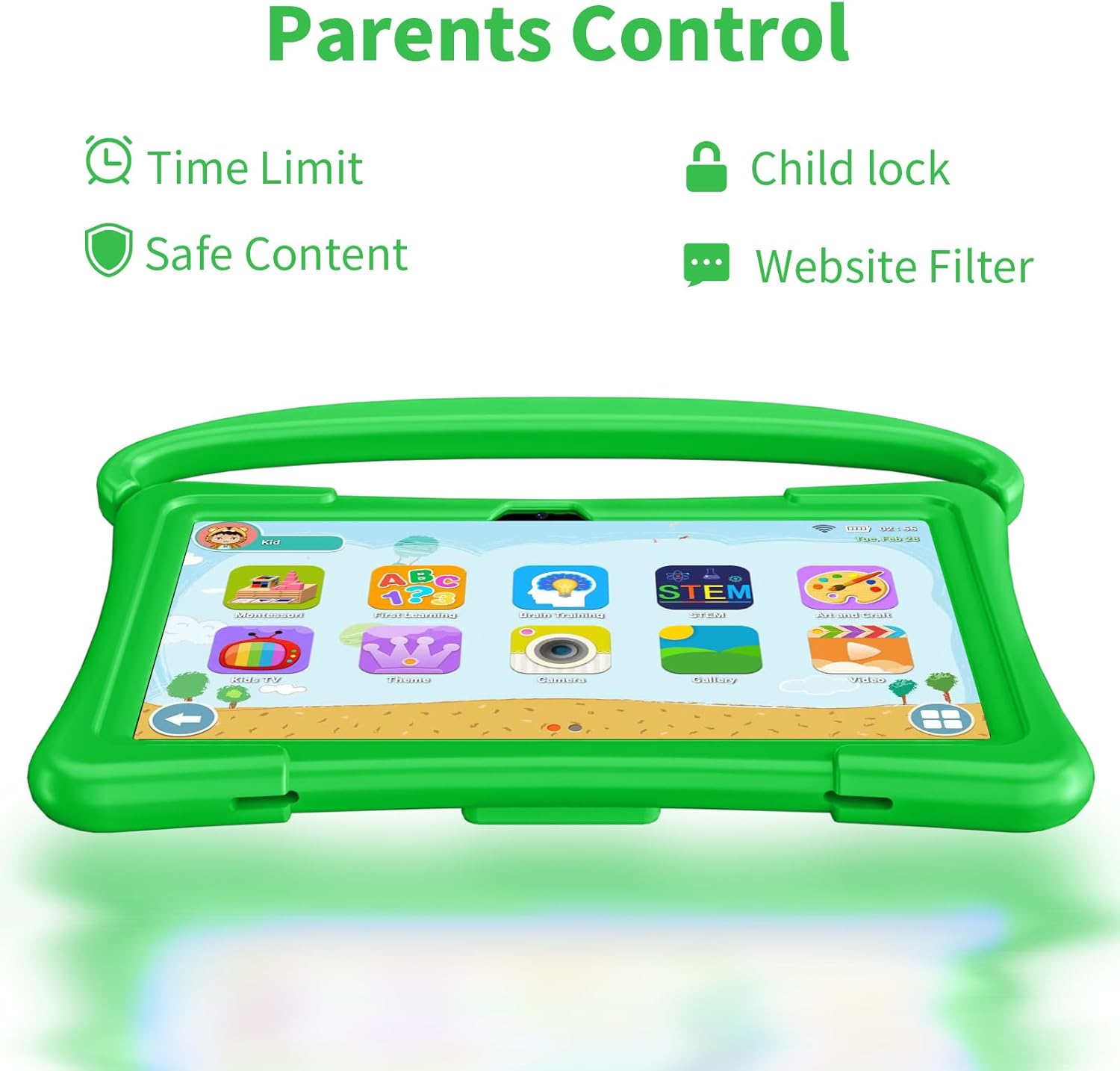 Android 13 / 4GB + 64GB – This kids tablet comes with the latest Android 13 system, a quad-core processor, and 4GB(2+2) RAM for stable operation. There is no need to worry about running out of space as it comes with 64GB of built-in storage which is expandable up to 512GB via Micro SD.